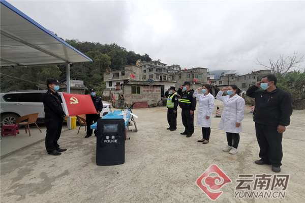 在疫情防控卡点,骑马坝边境派出所党支部书记在执勤人员休息之际,组织疫情防控联合执勤人员开展党史教育,讲明讲透学习党史的重要性和必要性,带领大家向党旗宣誓,重温入党誓词,学习中国共产党史、革命先辈典型事迹,教育引导党员民辅警铭记党的历史,继承发扬党的优良经验传统,真正弄清共产党人“从哪里来,到哪里去”的初心和使命,团结一致,守好国门。