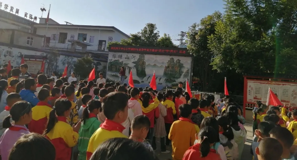 迤萨镇中心完小组织开展国旗下红领巾讲“四史”活动。通过爱国主义教育,激发学生对祖国的深刻了解和热爱。加强爱国思想,引导学生知国、爱国、报国,树立投身建设社会主义新农村和实现中华民族伟大复兴的崇高人生目标。