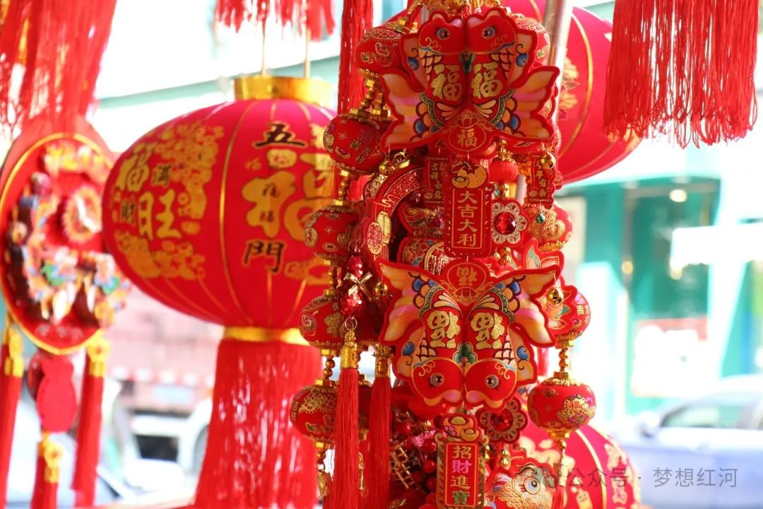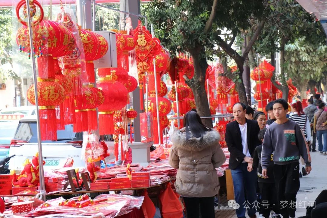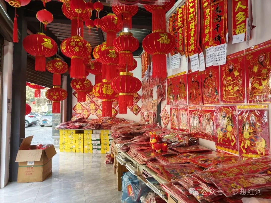 原标题:新春走基层 | 红河县:龙年春节将至 春联灯笼福字映红年货市场