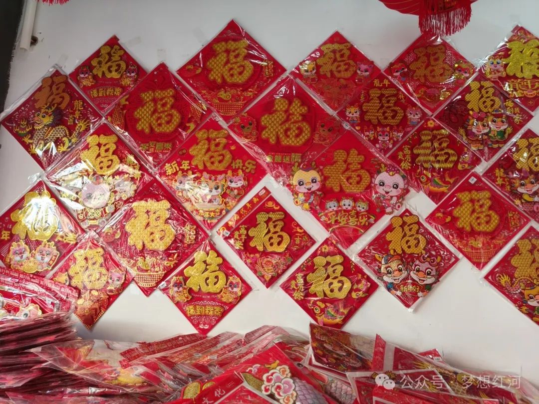 随着龙年春节的临近,我县大街小巷的年味也越来越浓, 置办年货尤其“福”字春联成了家家户户的头等大事,各家商户也提前进入了“春节模式”,一幅幅火红的福字春联映红了年货市场。