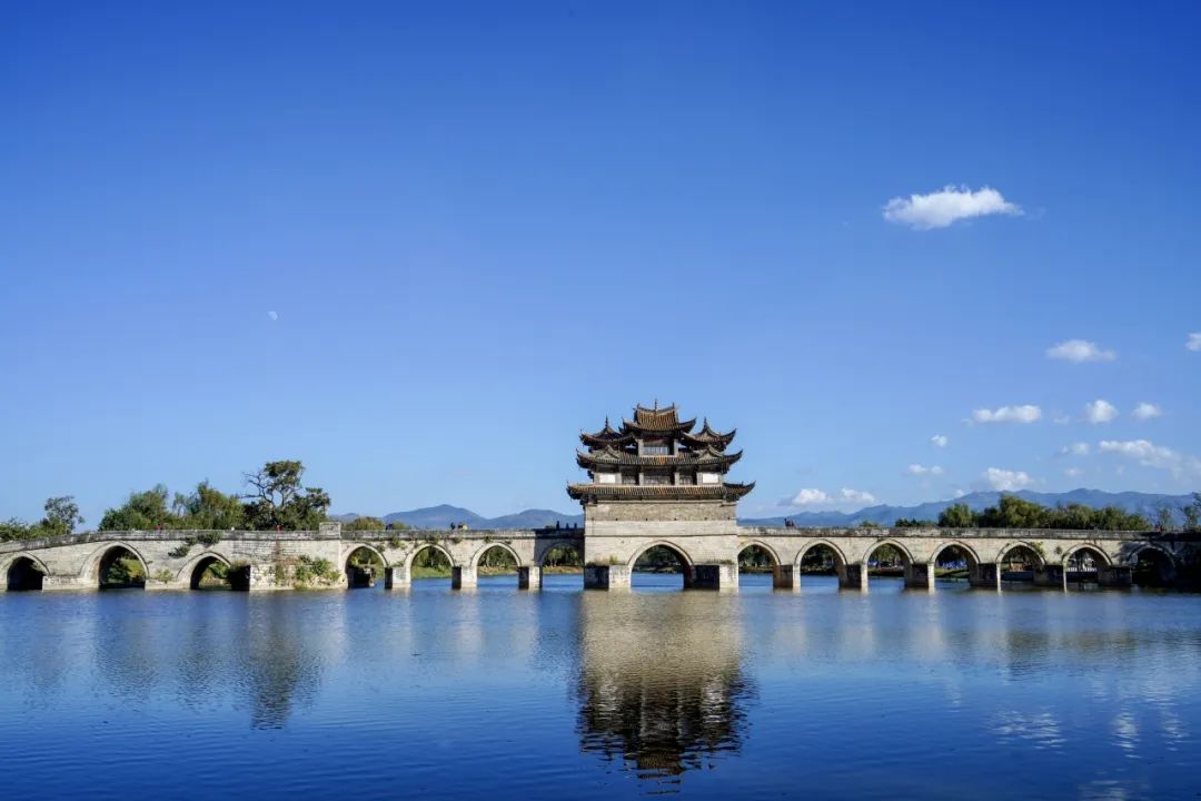 双龙桥站,因一座古桥而得名。这座当地人称之为“十七孔桥”的古桥,是一座三阁十七孔的石拱桥,始建于清乾隆年间,造型奇巧,是我国现存的优秀古桥之一,小火车停靠于此,游客可下车漫步桥上,感受岁月打磨的青石板路,欣赏古朴的窗棂木檐、雕花斗拱。