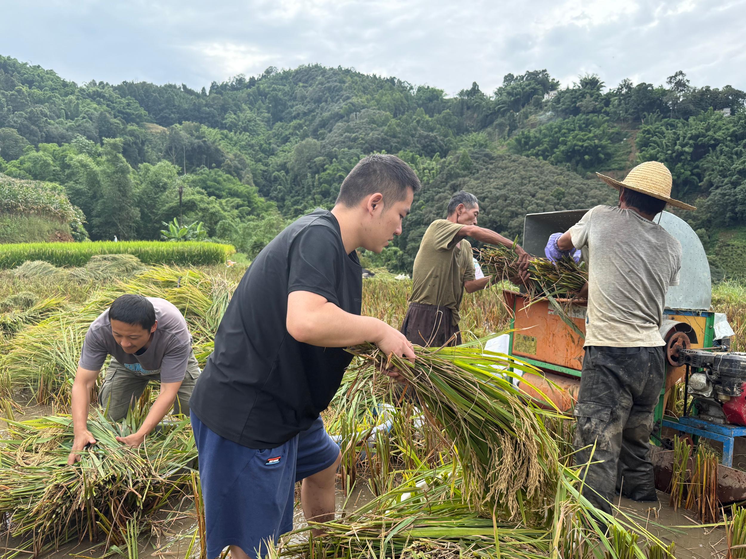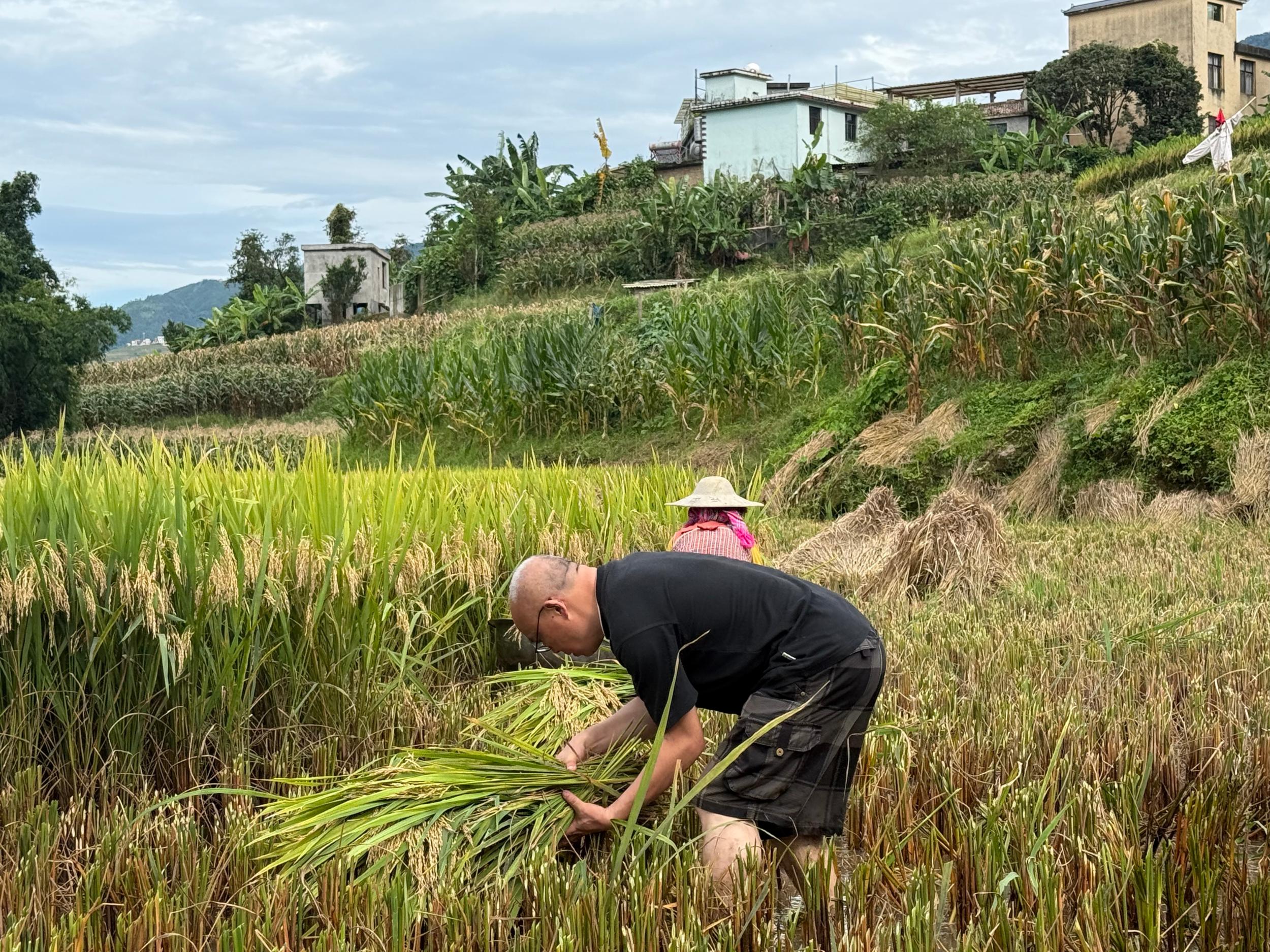 时下正值稻谷丰收的关键期,爬别村龙沙村民小组的稻田里,饱满的稻穗压弯了枝头。驻村工作队队员们主动深入田间,协助农户抢收。“左手扶稻秆,右手握镰刃,力度要稳……”在农户耐心指导下,驻村工作队队员们学得有模有样,弯腰割稻、捆扎稻束、搬运装车,人人身上都有一股子不服输的认真劲儿。