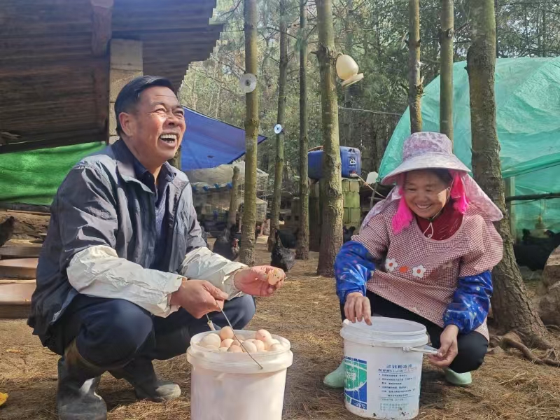 在此基础上,根据各村适宜发展林下经济的林地资源,挂联领导与各级党组织、党员群众联动,结合土壤、气候条件分析研判可适宜发展的林下产业模式,提供发展林下经济可行性、可持续性智力支持。针对发展林下经济的创业型人才,提供林地流转服务支撑、法律支持、创业贷款扶持“一站式”服务,为产业发展解决后顾之忧,让林业资源活起来。发展林下蛋鸡共养模式,每日带动10户农户就近就地就业,促进群众增收,有效激活林下经济生态效益与民生效益。
