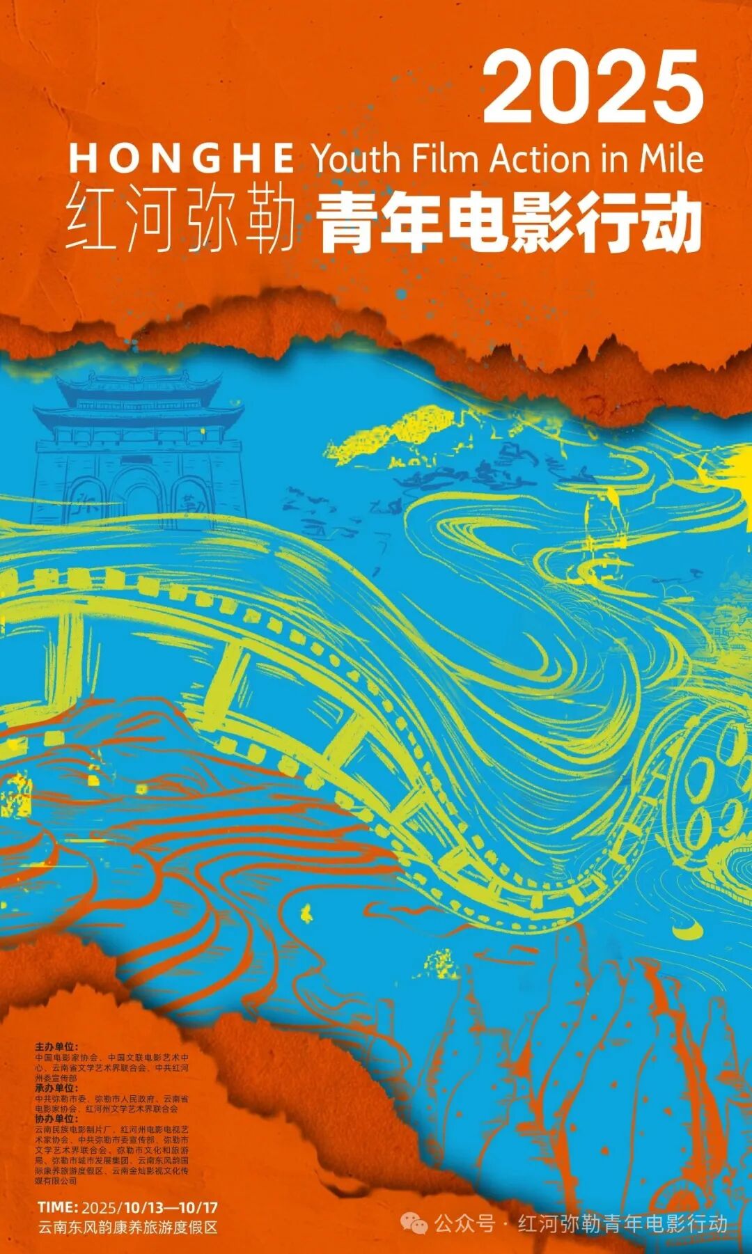 本次青年电影行动由中国电影家协会、中国文学艺术界联合会电影艺术中心、云南省文学艺术界联合会、中共红河州委宣传部主办;中共弥勒市委、弥勒市人民政府、云南省电影家协会、红河州文学艺术界联合会、云南东风韵文旅康养产业发展有限公司承办。