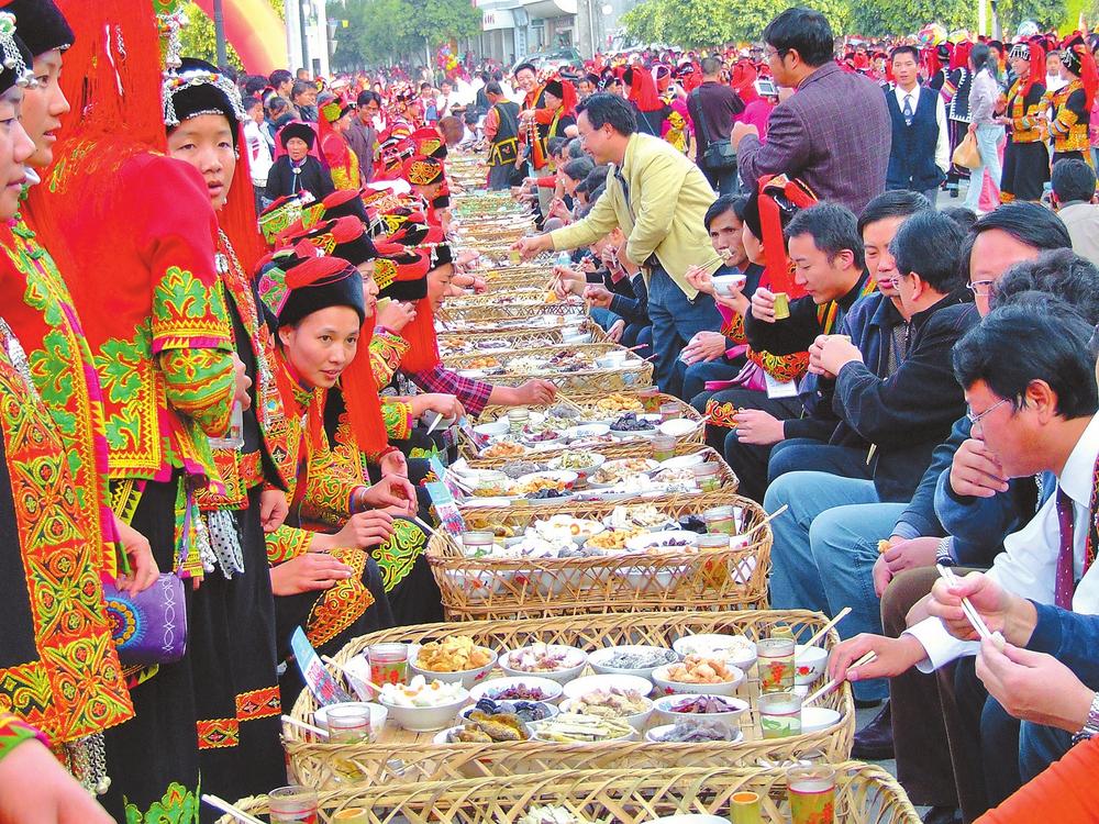 2004年,长街古宴就以2147米、2041桌的规模被列入上海大世界基尼斯纪录,创造了世界之最。历经20余年的发展,绿春哈尼十月年长街古宴规模不断扩大、内容不断丰富、内涵不断提升,成为挖掘绿春民族文化内涵、展现绿春形象、推动绿春发展的重要窗口和平台。
