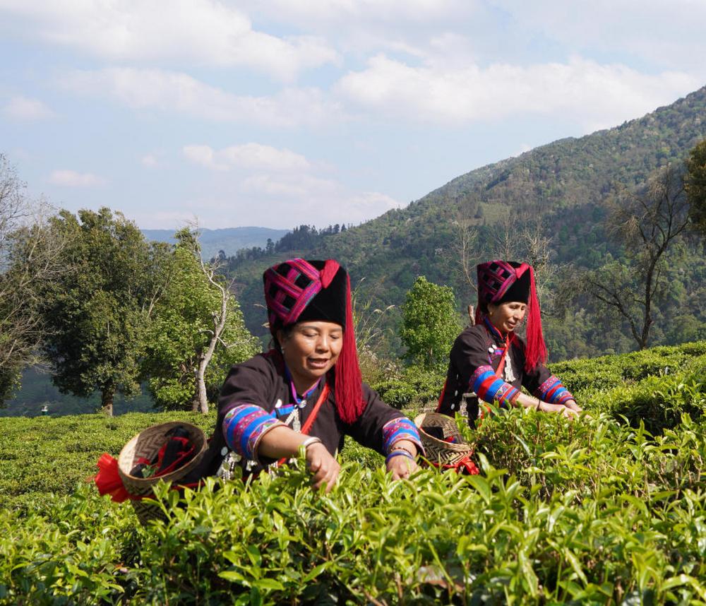 迷克茶山茶农采茶 通讯员 李建东 摄