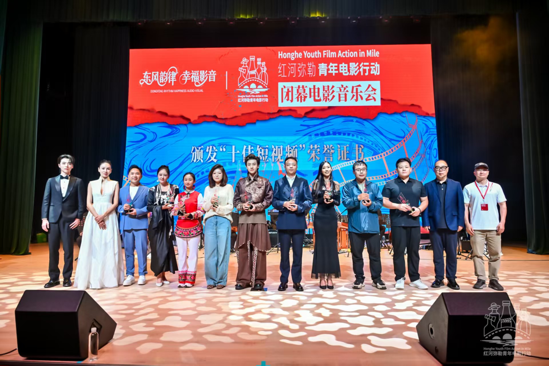 闭幕电影音乐会上,举行了“十佳短视频”“优秀电影短片”“优秀展映长片”“迷影特别期待项目”“特别贡献荣誉”“快乐弥勒城市推荐人”“红河弥勒青年电影行动星推官”“红河弥勒青年电影行动召集人”等8个项目的受聘仪式,通过荣誉表彰激发了青年影视创作者的热情与动力,借助“城市推荐人”“星推官”等身份搭建起行业资源对接桥梁,为弥勒影视文化传播与文旅产业融合发展注入了新活力。