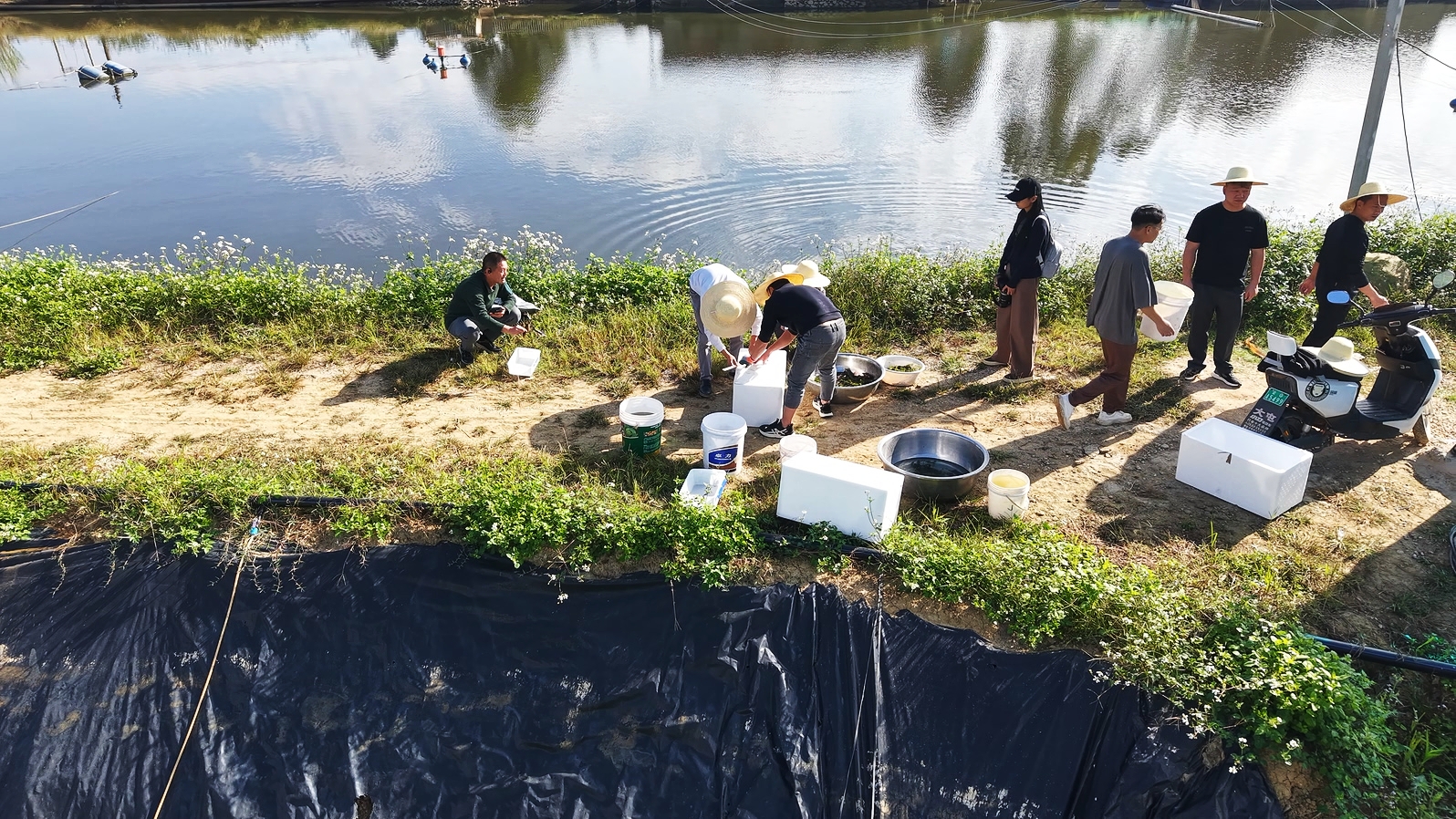 测产中,技术人员随机选取田块捕获红螯螯虾,详细记录总产量、样本数量、平均规格、测算亩产量,随机抽取一定数量个体,逐个测量体长、体重,观察健康状况。