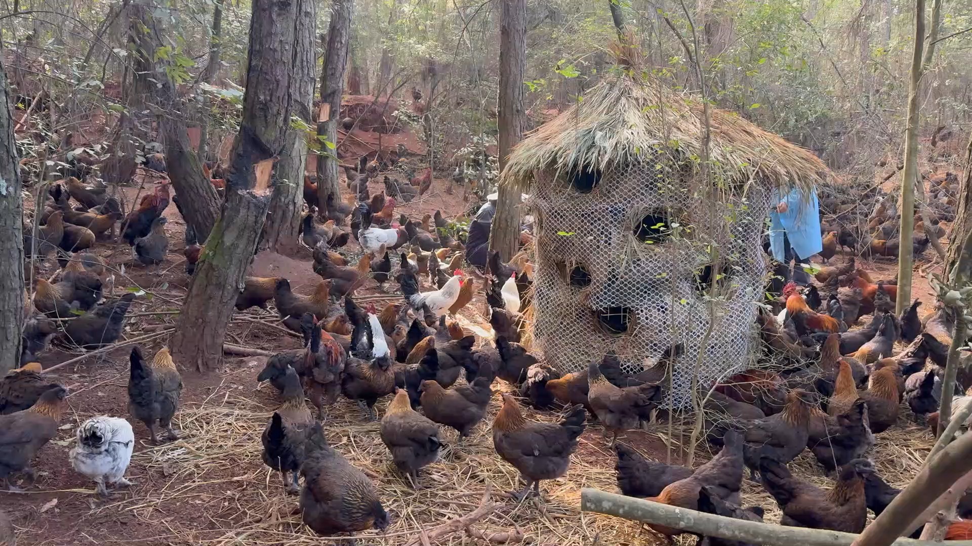 冬日清晨,走进红河哈尼族彝族自治州石屏县牛街镇他腊村的林下生态养鸡场,只见工作人员一声吆喝,郁郁葱葱的林木间便迅速有上万只毛色油亮的“散步鸡”从四面八方飞奔而来,场面蔚为壮观。