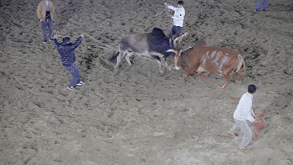 斗牛场内,参赛斗牛甩动粗壮脖颈,踏着沉稳步伐昂首入场。它们双目炯炯、肌肉紧绷,尽显“猛将”风范。随着赛事开启,105头斗牛如猛虎下山般冲向对手,角力碰撞间战况激烈,引得看台上观众呐喊声震耳欲聋,与牛角相撞的闷响交织回荡,现场氛围热烈非凡。