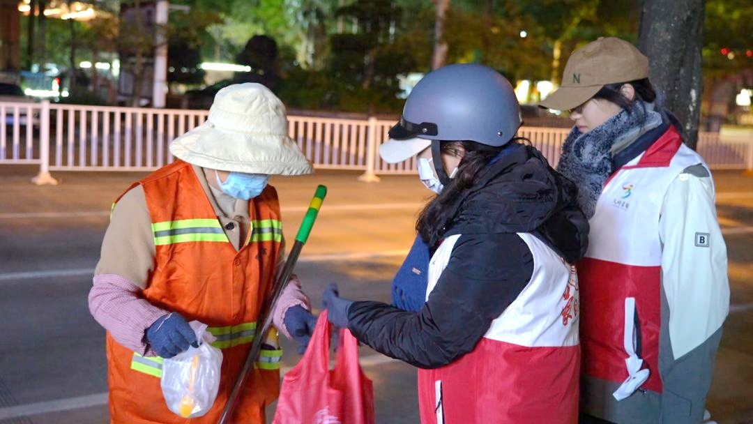 接过汤圆和暖心包,环卫工人们的脸上绽开了笑容。一句问候、一份关怀,在街头巷尾勾勒出“城暖人善”的画卷。这份温暖并非一时之举——在蒙自,冬至为环卫工人送汤圆已成为志愿者连续3年坚守的传统。“福至冬至”文明实践志愿服务活动不仅让一线劳动者感受到城市的尊重与温度,还凝聚起全社会关爱劳动者的共识,为建设文明和谐的城市持续注入暖流。