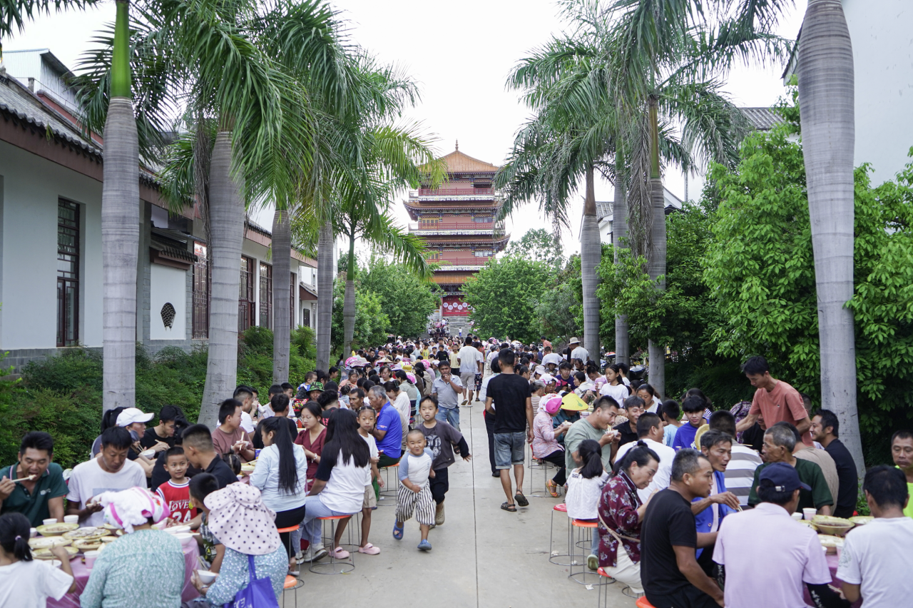 雨过铺街道将本土多元民俗风情与美食体验深度融合,打造出一场场沉浸式的文旅盛宴。日常里,凉拌鱼、干锅鸡、彝族水豆腐等地道风味飘香街巷,特色餐馆宾客盈门;节庆时,春节、祭龙节、火把节等传统节点好戏连台,极具民族特色的长龙宴更是重头戏。各村寨摆开百席长宴,村民与八方游客围桌而坐,席间歌舞翩跹、远亲近邻齐聚一堂,共享佳肴、共话情谊,领略中华文化百花齐放的独特魅力,在交流互鉴中感受“中华民族大家庭”的融洽和温暖。