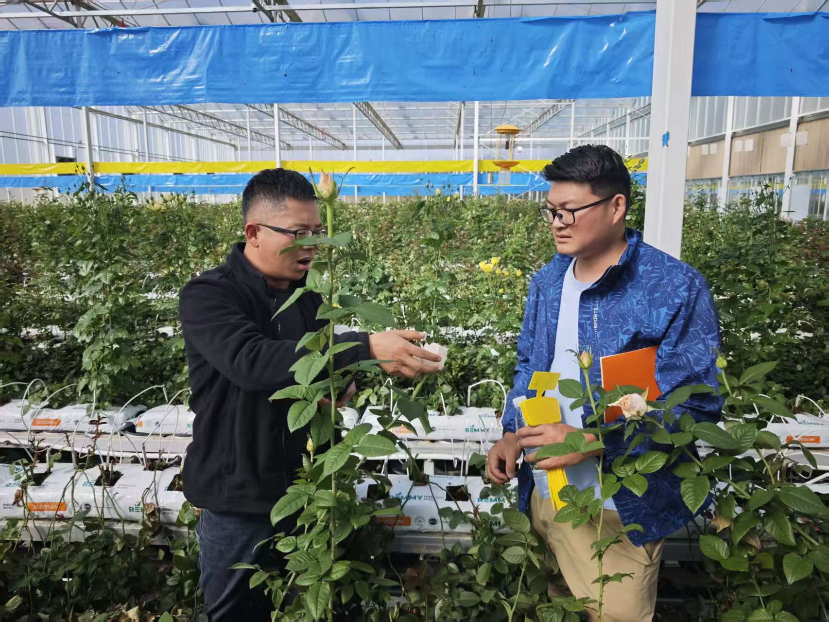 统计显示,去年开远市国家现代农业产业园通过构建“研发—测试—推广”一体化链条,研发月季新品种10个、引进花卉新品种200个。园区至今已累计引进花卉新品种2992个、研发花卉新品种74个,2024至2025年自主研发新品种在园区测试棚内种植3.5万株、产量达105万枝,其中具有开远特色的“摩朵、眯朵、架吉”3个月季品种获国家林草局新品种登记授权,包括“花梨木”在内的多个月季新品种在昆明、楚雄和肯尼亚等中外多地推广种植,逐步实现开远种苗、全球开花。