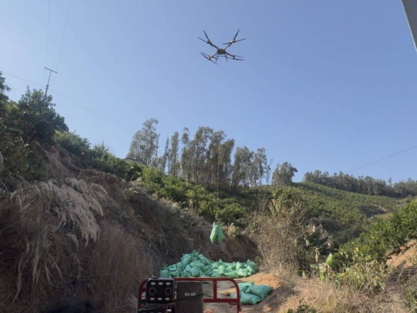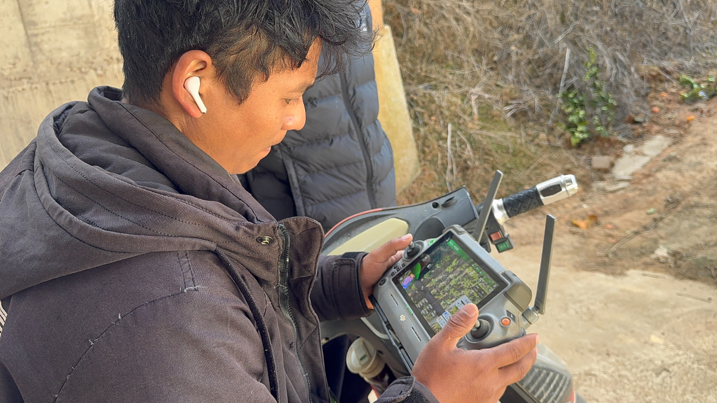 冬日午后,阳光正好。弥勒市朋普镇歪者山水库旁的红河江泰果业3400亩柑橘种植基地里,装吊着肥料袋的无人机正发出隆隆响声,穿梭在基地上空。负责驾驶无人机的飞手朱冲顺今年27岁,已经有快5年的无人机驾龄,他指着天空中盘旋的无人机笑道:“现在施肥全靠这‘铁翅膀’,以前肥料人工背上山需要整整两个月,现在20天不到就搞定。”