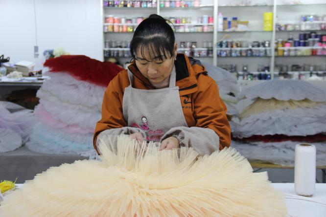年关将至,位于弥勒市西三镇的云南多莉服饰有限公司生产车间仍然一片忙碌,数十台缝纫机哒哒作响,工人们忙活着裁剪、缝制、熨烫,一件件精美的芭蕾舞台服饰就这样制作完成,打包后将销往新加坡、韩国等国家。
