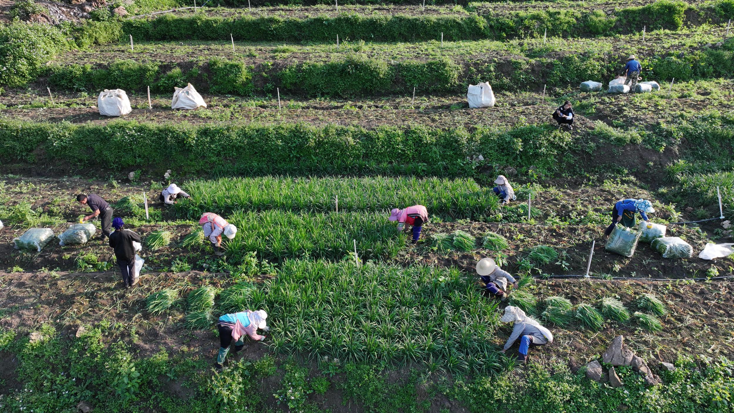 在红河哈尼族彝族自治州元阳县南沙镇石头寨村,一片曾因单一种植香蕉而土壤板结荒废的千亩土地,如今焕发勃勃生机。绿油油的韭菜在田间随风轻摇,工人们忙着收割、装袋,无人机吊运货物,现场发放工资的欢声笑语与韭菜清香交织在一起,这正是元阳县以绿色兴农、科技惠农,推动农业高质量发展、助力乡村振兴的生动写照。