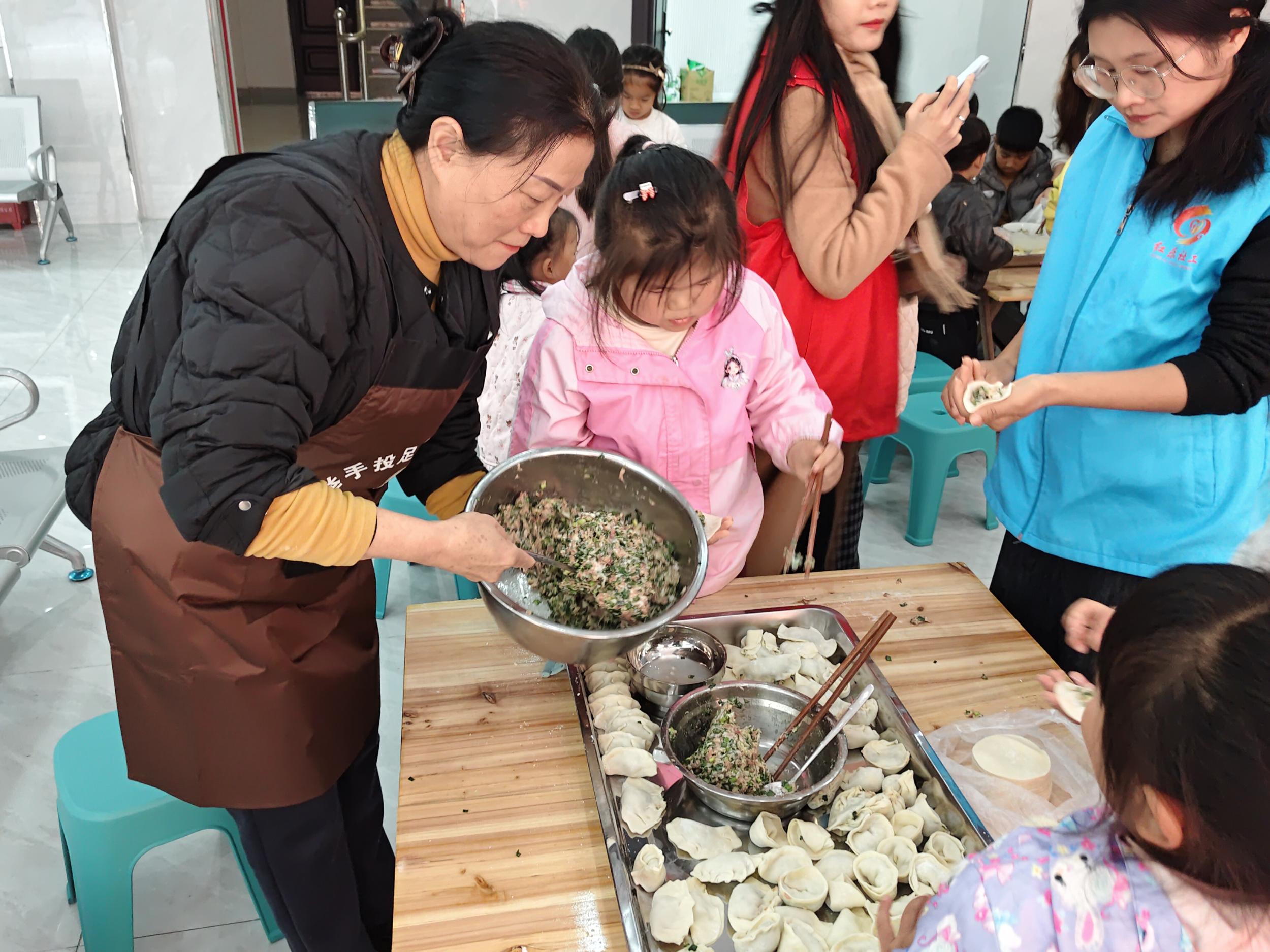 在玉屏镇卫国社区,志愿者、老年人与30余名儿童齐聚一堂。“饺子象征着团圆美满,相传是东汉张仲景为救济百姓发明的……”志愿者熊唤英结合民俗书籍,讲解民俗渊源、分享经典故事,开展包饺子民俗体验,孩子们在指导下动手捏合、创作元宝形、月牙形等各式饺子,现场欢声笑语不断。