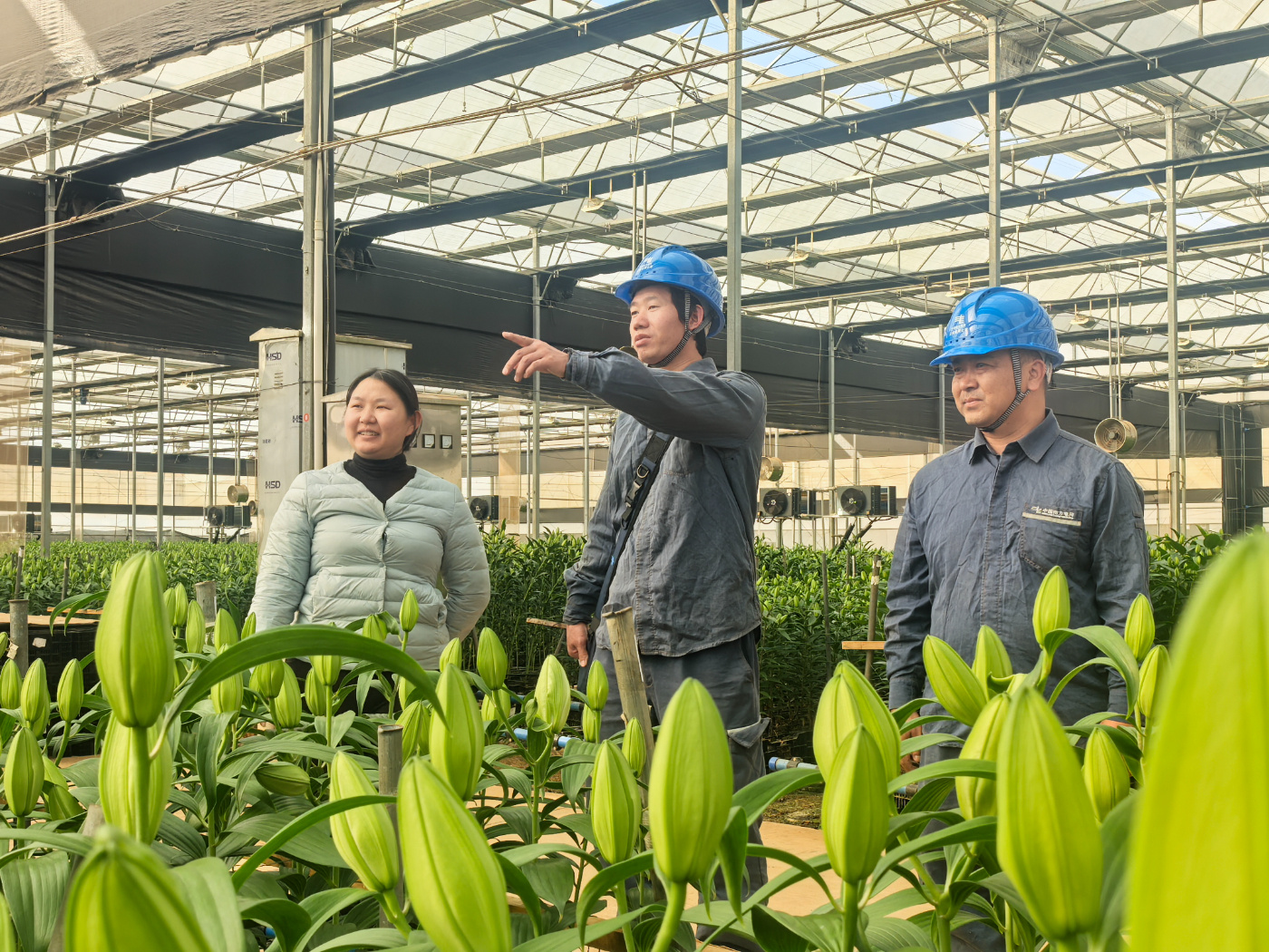 近日,在弥勒市虹溪镇的花卉种植基地里,连片的百合花苞饱满欲绽,散发着一股淡雅的清香,沁人心脾。走进其中一座智能温室大棚,恒温系统显示屏上的数字稳定在20℃,加湿器均匀喷洒着水雾,风机匀速旋转着。“公司在虹溪种植花卉共540余亩,每年的用电需求在90万度左右,每年的电费共50余万元。”云南振东花卉有限公司工作人员李佳说道。从育苗到冷链存储,各环节用电需求持续增长,对供电稳定性和服务效率提出了更高要求。