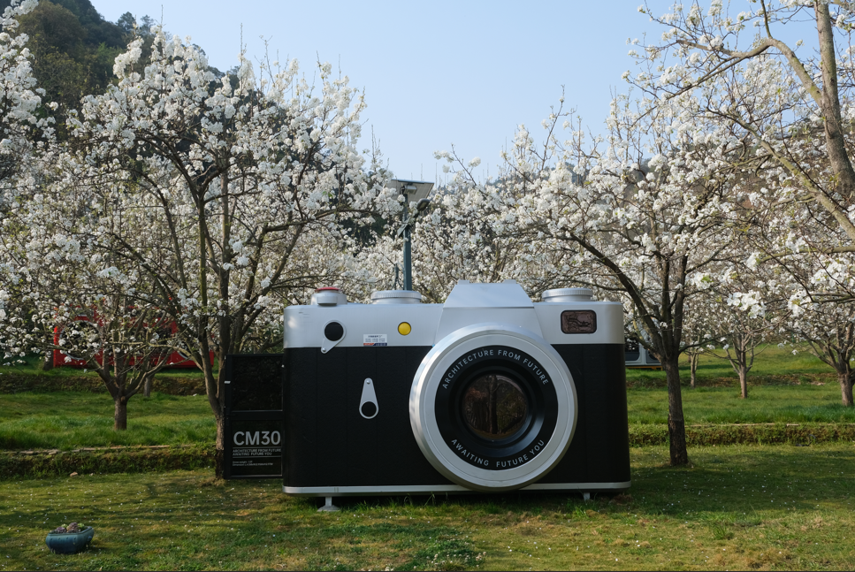 范洪方当下便决定出资在梨园搭建一批创意售卖点。几个月后,六个造型独特的摊位出现在梨园里——有的做成老式收音机,有的形如复古照相机,镜头恰好是售卖窗口。明黄、橙红、灰黑……鲜艳的色彩点缀在梨花树下,不仅售卖饮品小食等美味,更成了游客争相拍照的打卡点。
