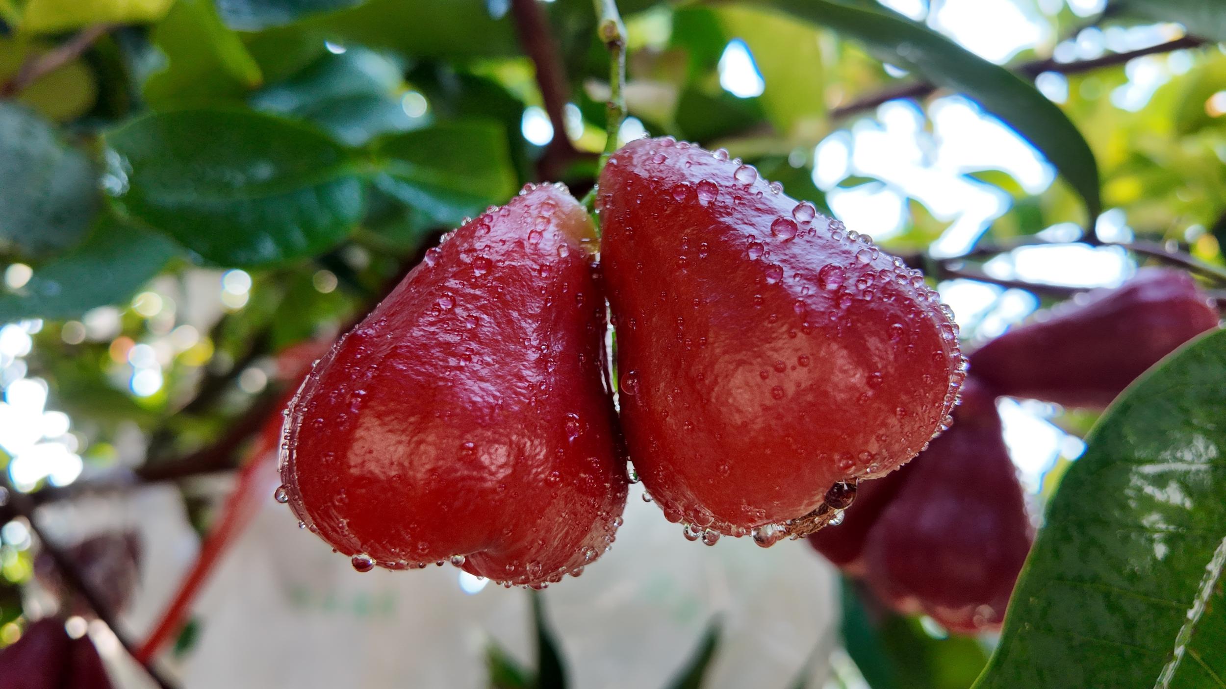 莲雾被誉为长在树上的“矿泉水”,口感清甜脆爽,对气候和种植管理要求较高。迤萨镇地处干热河谷,光热资源丰富,昼夜温差大,素有“天然温室”之称,为反季节莲雾种植提供了得天独厚的自然条件。