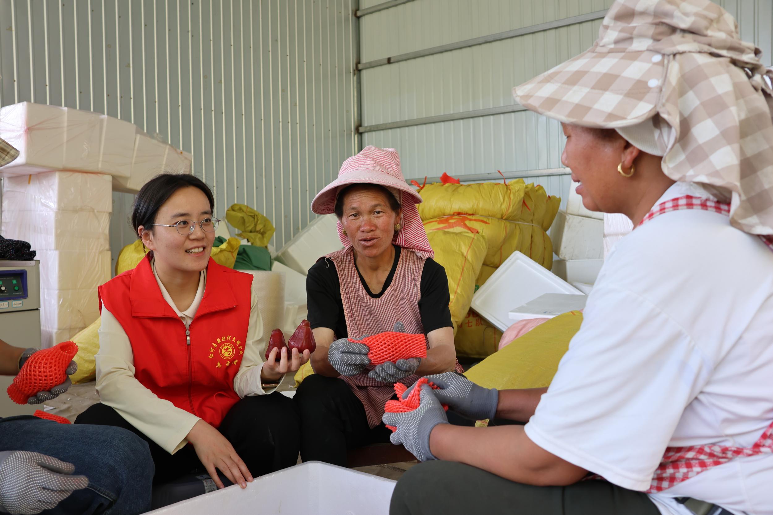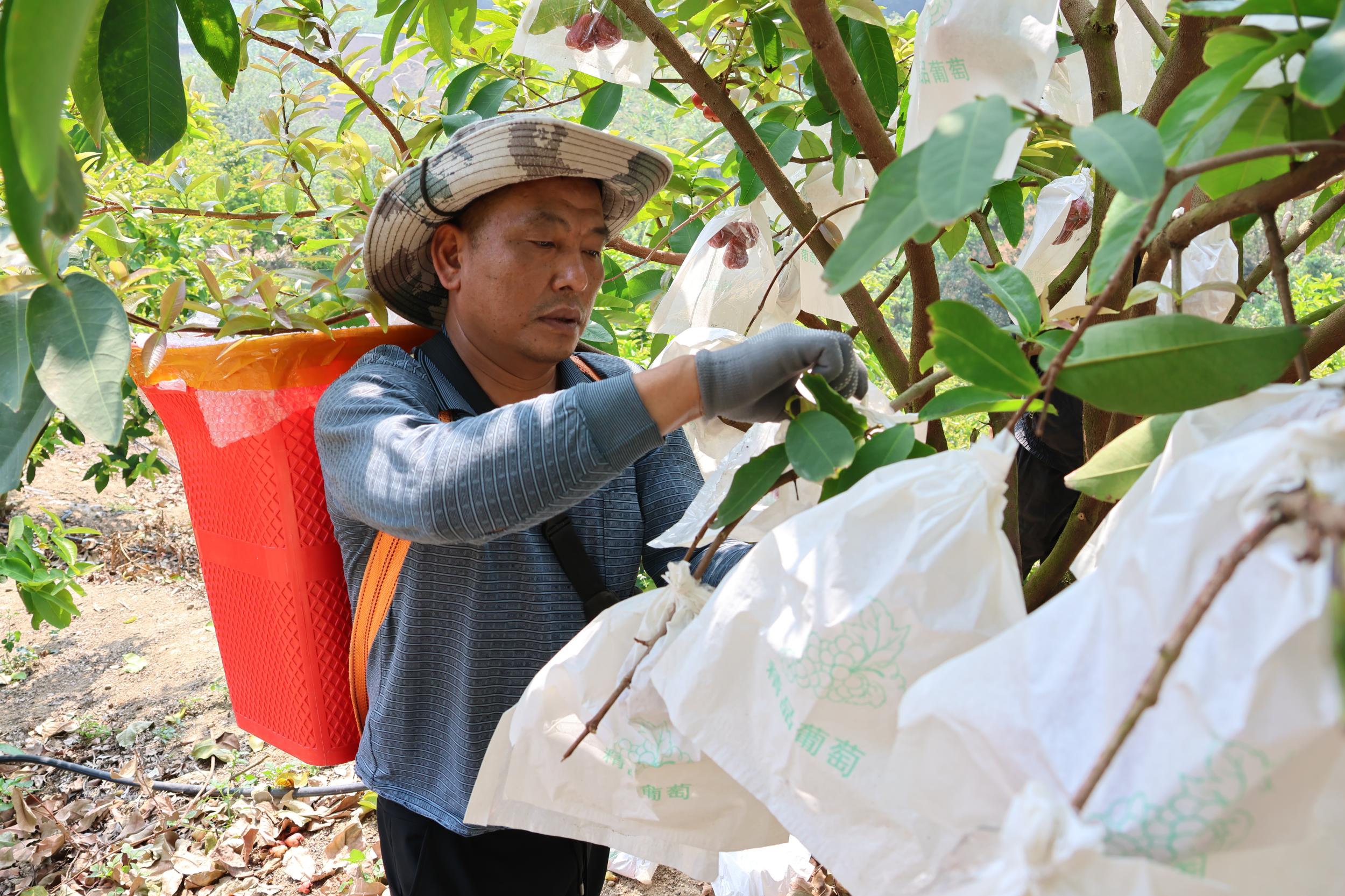 莲雾产业的发展,得益于红河县深入推进抓党建促乡村振兴的实践探索。坚持“党建赋能产业链”,迤萨镇采取“党总支+公司+农户”的利益联结机制,通过土地流转、吸纳务工等方式,带动周边群众稳定增收。“以前家里种玉米安全靠天吃饭,现在我们两口子一天能挣100多元,还能照顾家里的老人小孩,比外出打工强多了。”在基地务工已有6年的阿扎河乡村民李保周夫妇说。