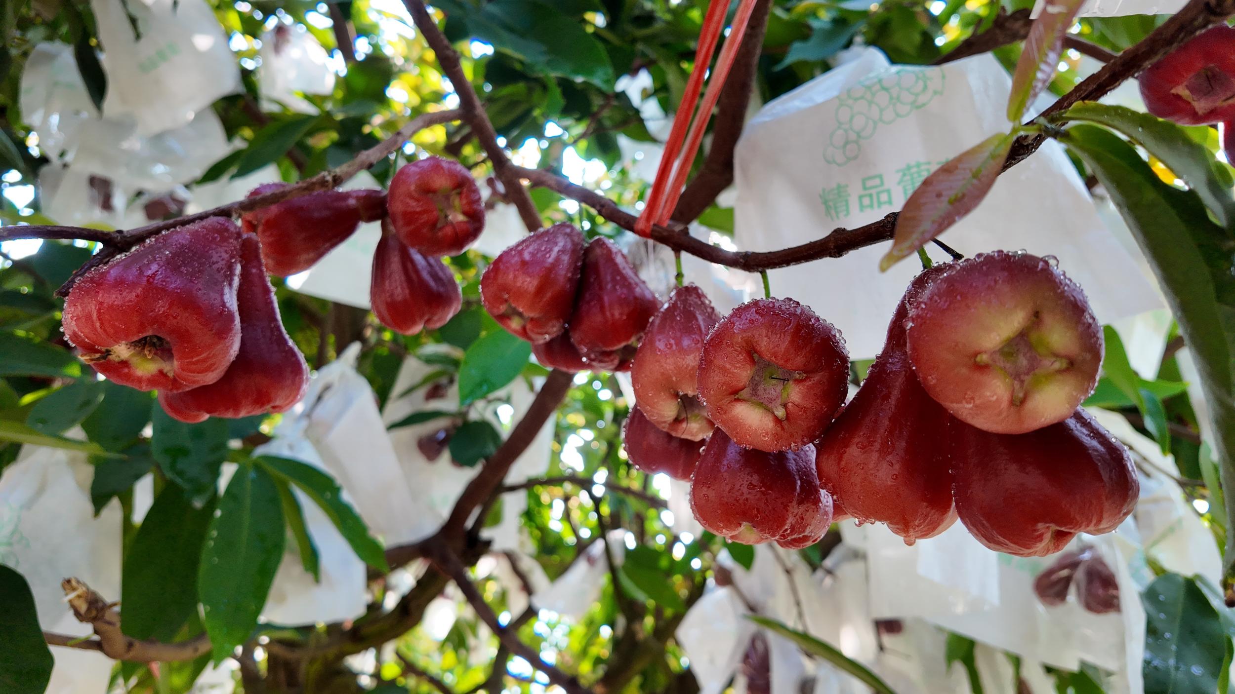 “我们通过精准的水肥管理和修剪控花技术,让莲雾在3月错峰上市,正好填补市场空档期。”基地负责人晏华屏介绍,今年基地230多亩莲雾进入丰产期,预计总产量达80余吨,主要销往海口、福建、厦门等地,总产值约240万元。“莲雾成了我们这儿的‘致富果’,日子越过越甜。”