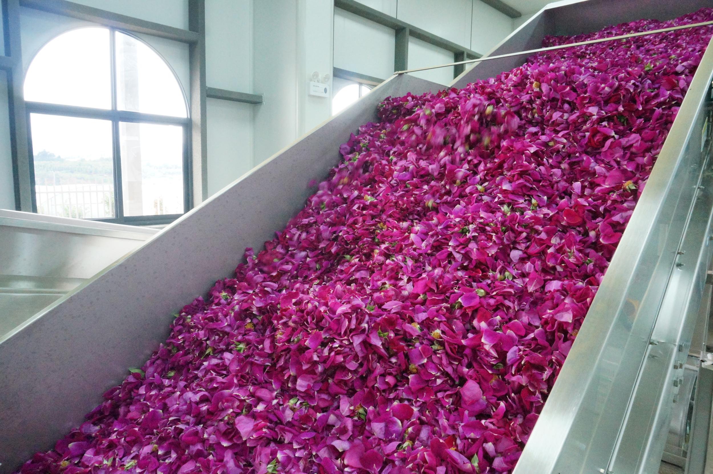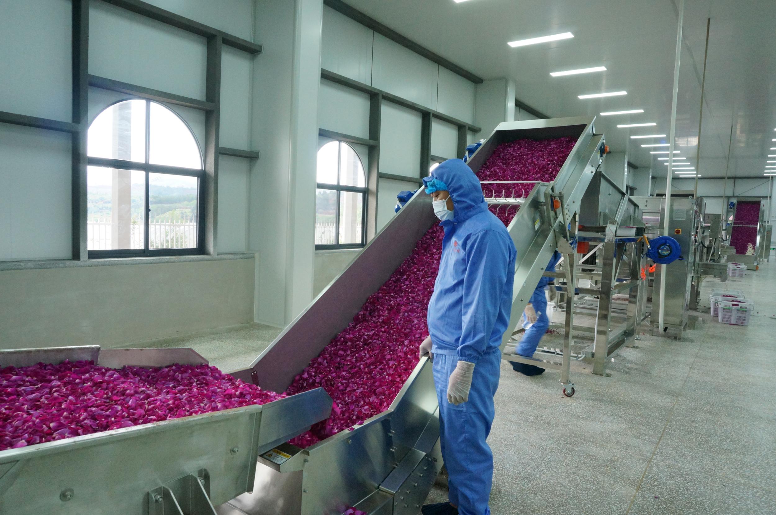 “多年来,合作社带领农户发展玫瑰种植,推动‘种植+加工+销售’一体化发展。色选厂投产后,将进一步完善产业链、提升产品附加值,带动更多农户增收致富。”弥勒市绳武产业发展有限公司负责人、黑桥哨信创种植专业合作社社员王涛介绍。该全自动加工生产线实现了对玫瑰花瓣色泽、形状、新鲜度等多维度的精准判断与分类,项目投产后每小时可色选500至700公斤鲜花,主要用于制作鲜花饼,玫瑰酱,玫瑰醋等系列产品。