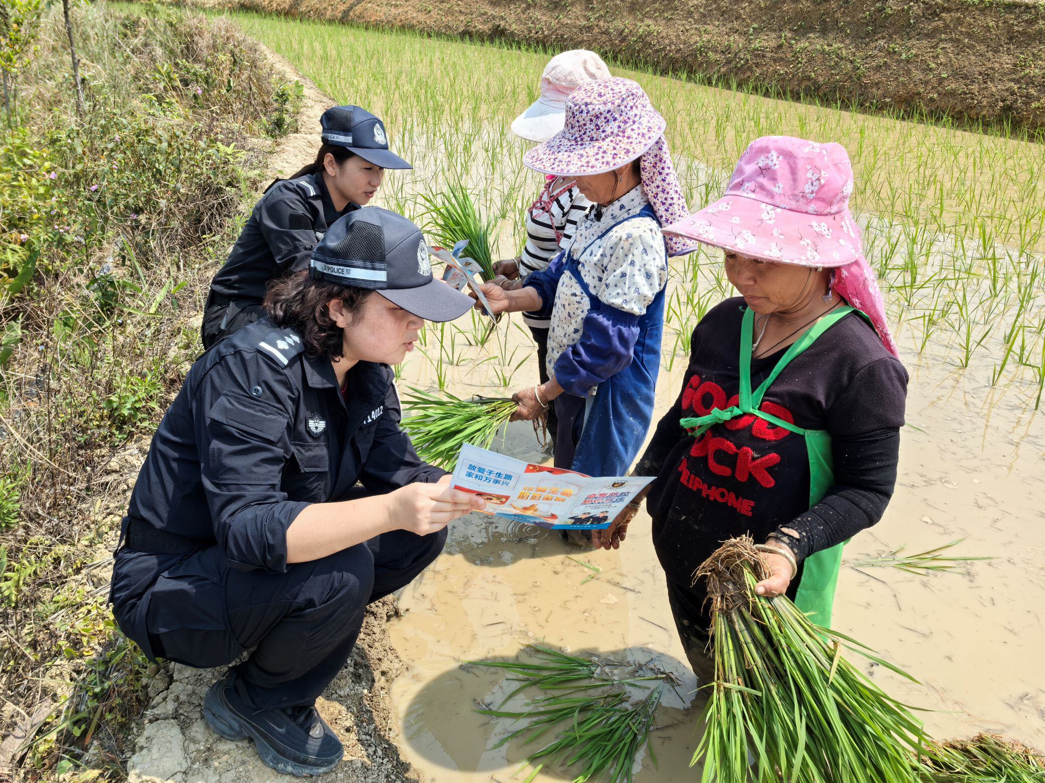 结合春耕时节农事特点,当地民警、辅警深入田间地头开展精准化安全宣传,围绕交通安全、防火安全、电信诈骗、虚假农资诈骗等重点内容,通过面对面讲解、零距离宣传、以案说法等形式,普及安全防范知识,提醒广大群众提高警惕,切实将安全理念送到群众身边,为春耕生产筑牢思想防线。