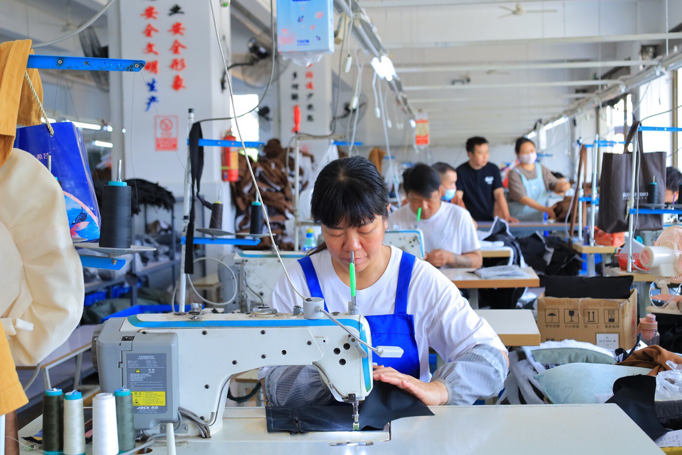 知韵实业制衣厂是一家由乐白道街道引进的棉衣生产企业,产品主要销往海外,2024年11月投产至今产能不断提升。在生产车间,一排排缝纫机飞速运转,工人们熟练地进行缝制作业。