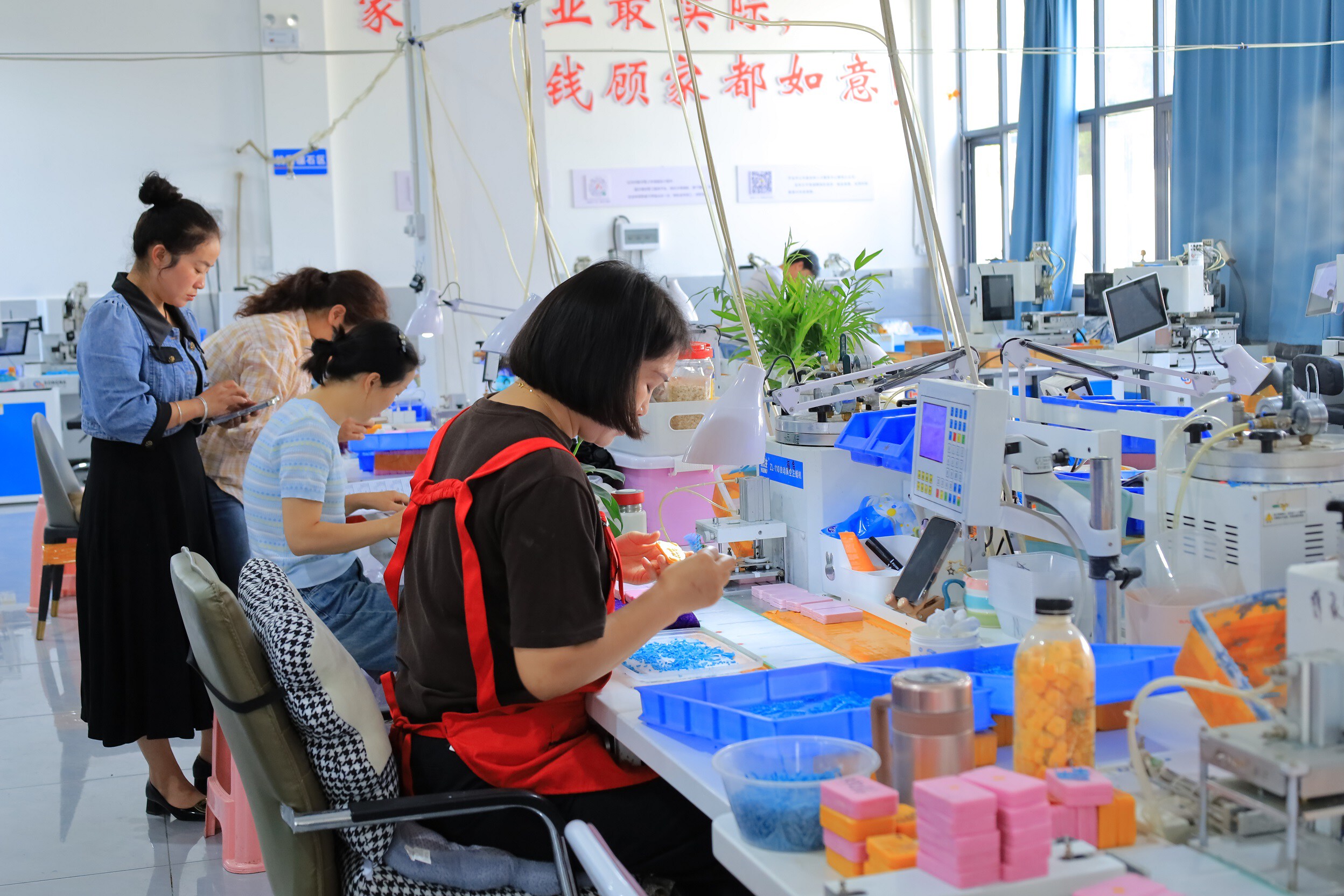 在位于灵泉街道云龙社区的首饰加工厂,工人正秩序井然地组装饰品。这里工作时间灵活,工资计件结算,还能选择“居家代工”模式,尤其适合需要兼顾家庭的人群。