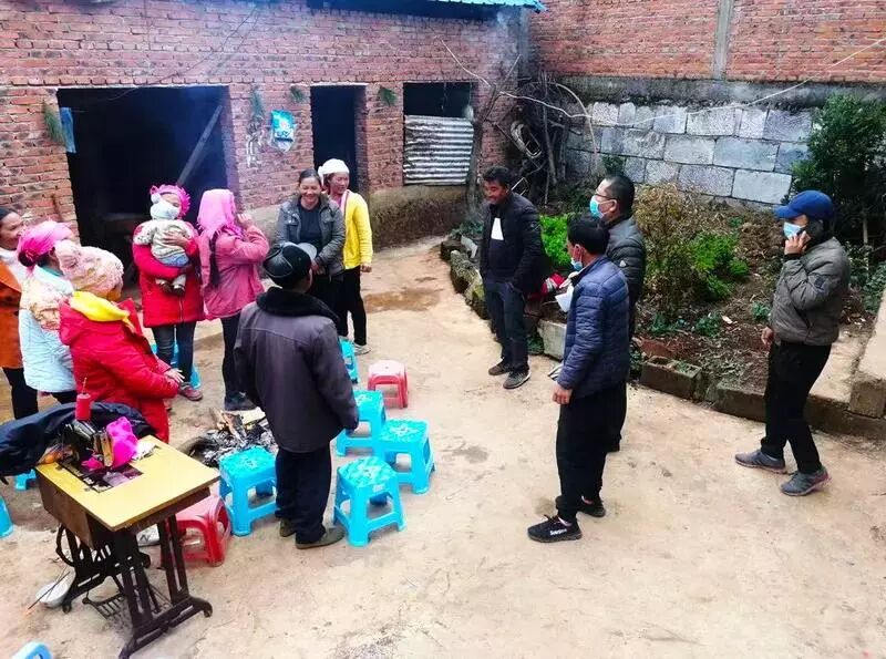 工作人员到田间地头和准备办宴席的村民沟通 图片来源于掌上红河