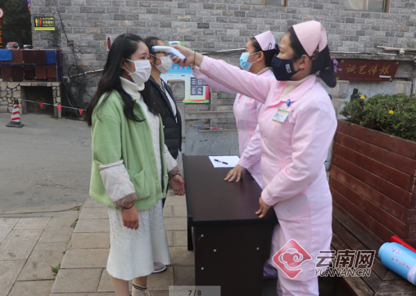 2月3日,绿春县大兴卫生院护士李然修和同事来到县行政中心门口,带着体温计为今天收假的干部职工开展体温测量登记。县卫健局副局长李中才说:“除了在行政中心开设体温监测点以外,我们还在农水巷路口、东仰风情园设立两个体温检测点,专门为各单位返回工作岗位的干部职工测量体温。”