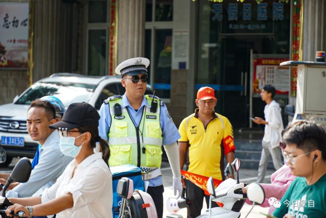 在路上各交通路口,除了咱们的交警叔叔,还有许多交通劝导员,别忘了,文明出行靠大家哦~