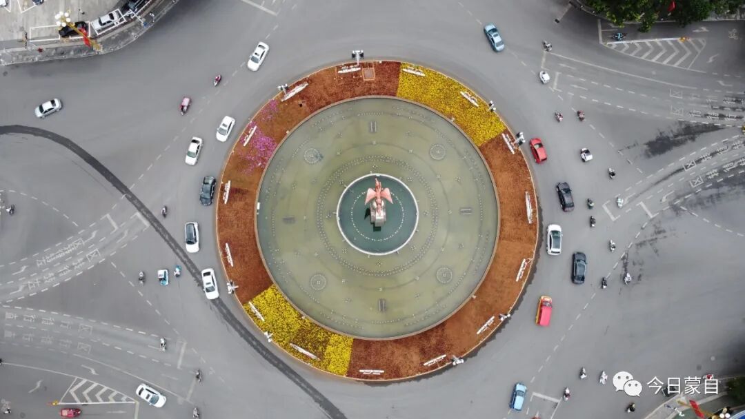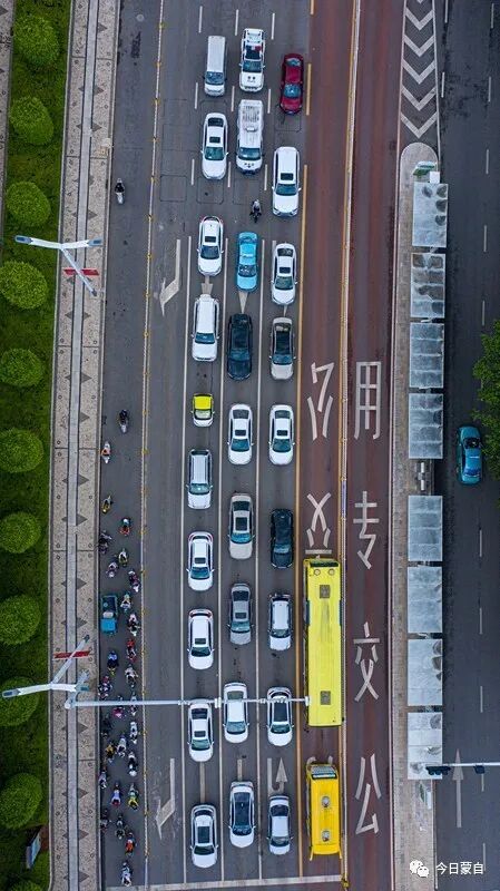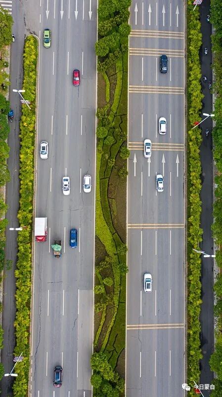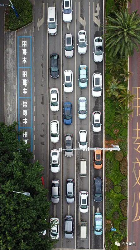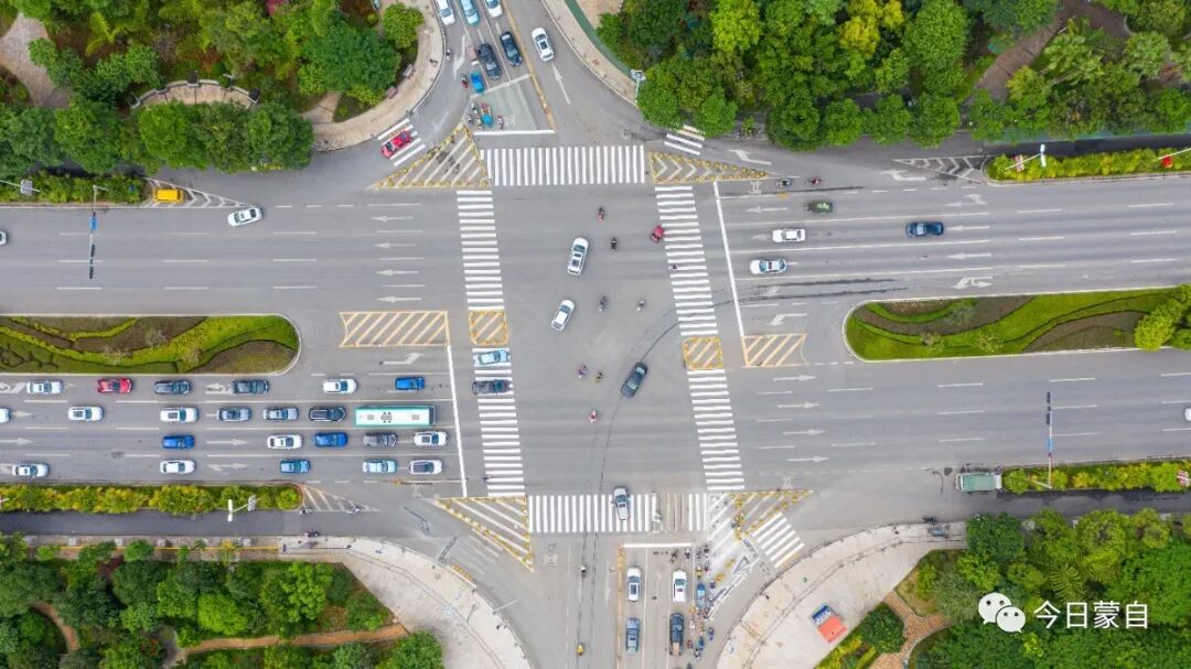 没想到吧,从天上看,蒙自的道路及车辆犹如一幅幅交通示意图~