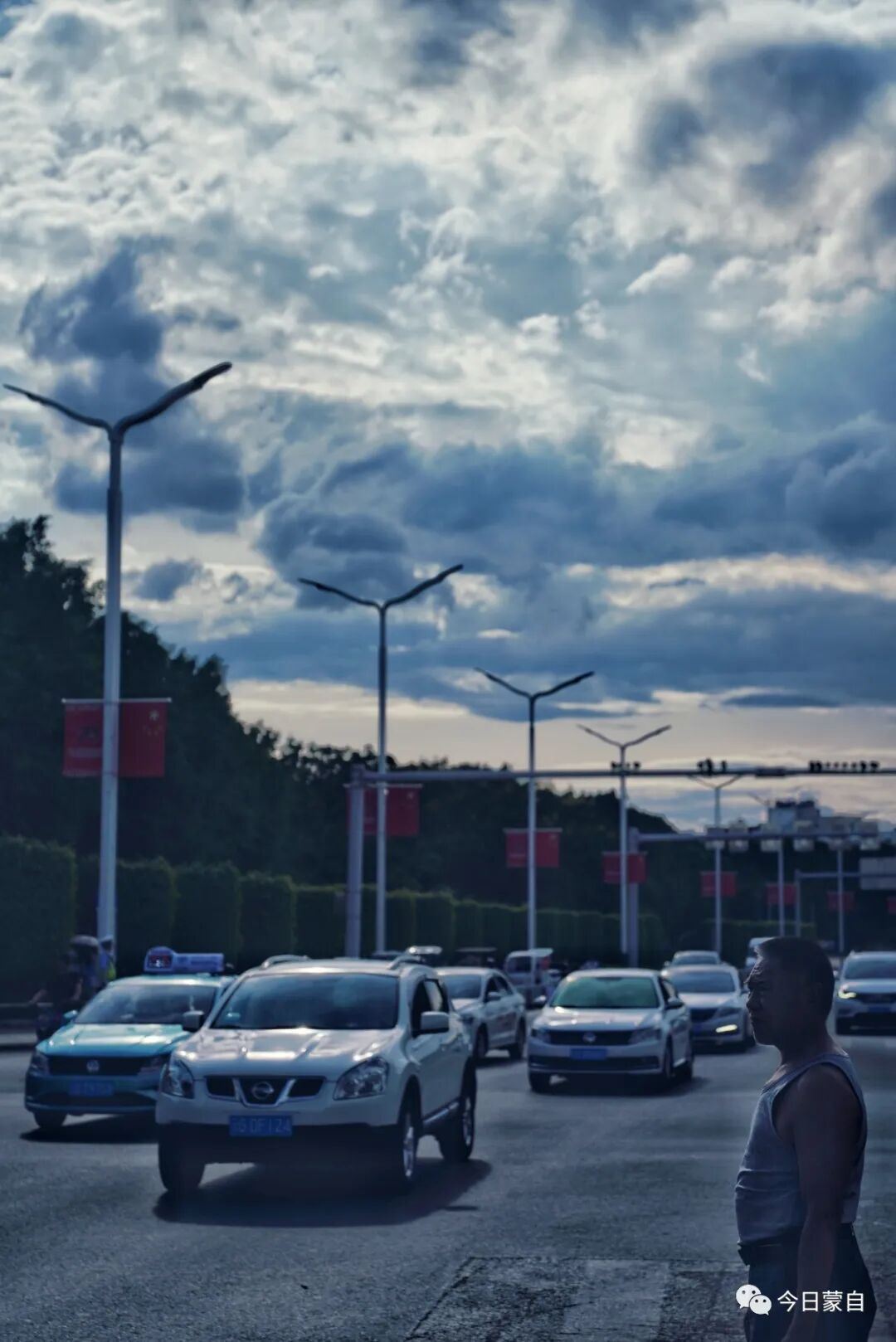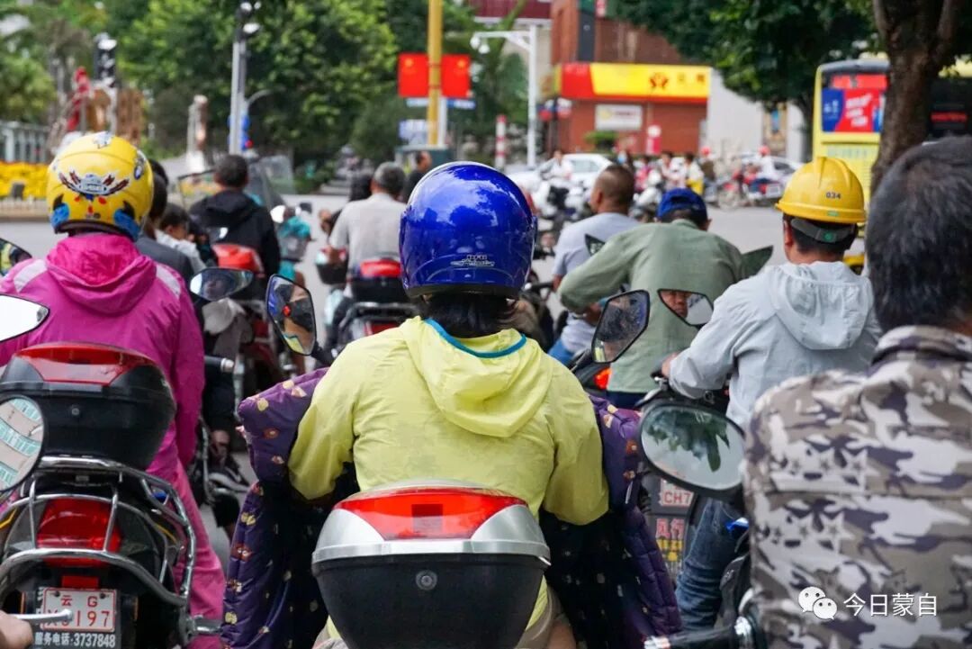 现在的蒙自,遇到上下班高峰期、下雨天...也会出现长长的车流。
