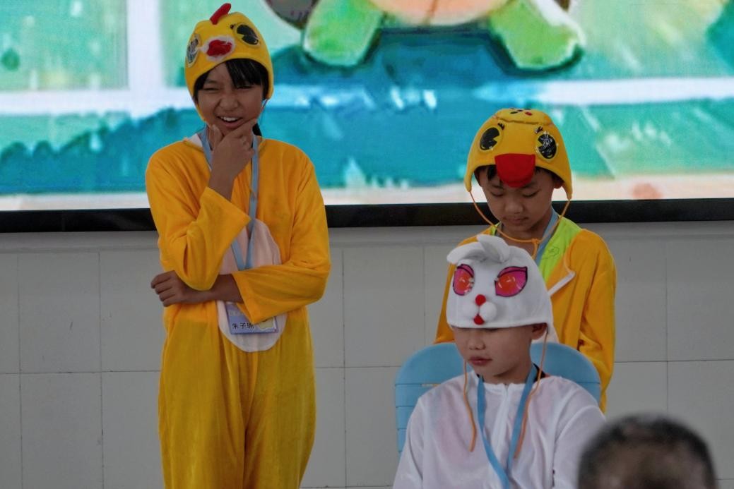 在侯云洁的指导下,义教团队采用情境式教学,通过情景英语、戏剧的方式激发学生的英语学习兴趣。“孩子们在戏剧中能够自然而然地开口说英语,每一句台词都会伴随着生动的表情和动作,这对孩子们主动开口说英语是非常有帮助的。”杨宇恒说。从最初的“哑巴英语”到如今生动活泼的戏剧课堂,改变的不仅是教学方式,还是这片土地上孩子们的人生轨迹。