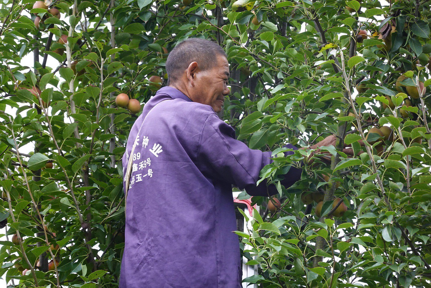 灵泉街道城干村委会石岩脚村村民李秋菊的葫芦梨地里迎来收获期。邱美华 摄
