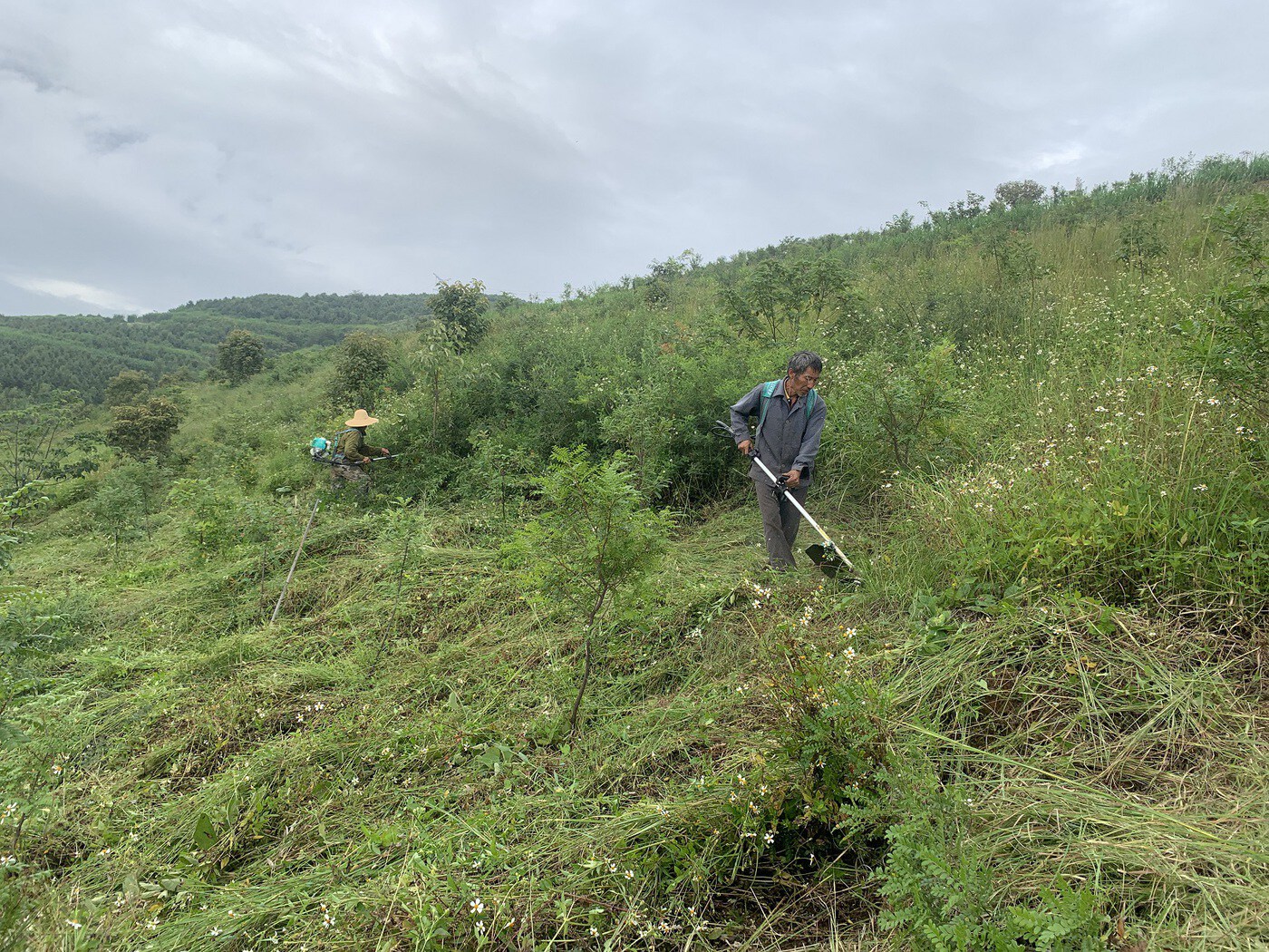 在白土墙国有林场二台坡,工作人员正穿梭林间开展除草割灌作业。这片约3000亩的造林地已种植清香木、云南松、香樟树等30种树苗两年,长势良好。