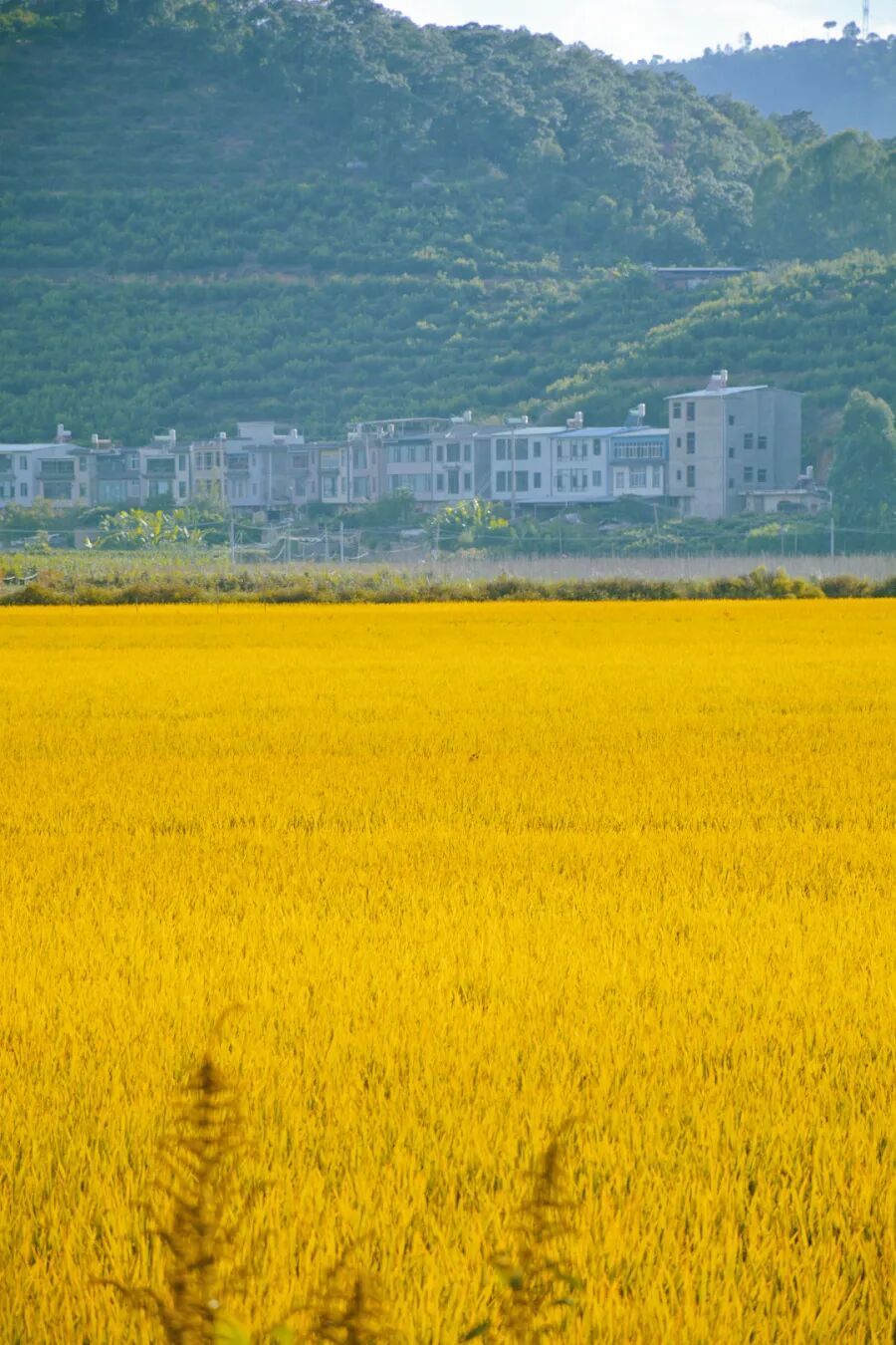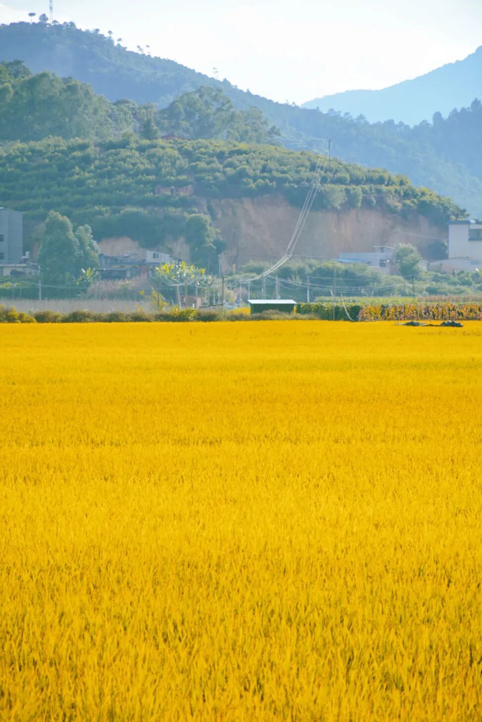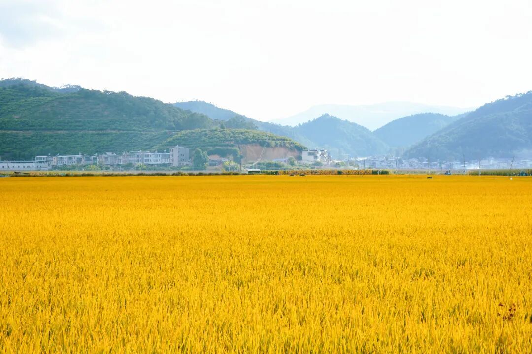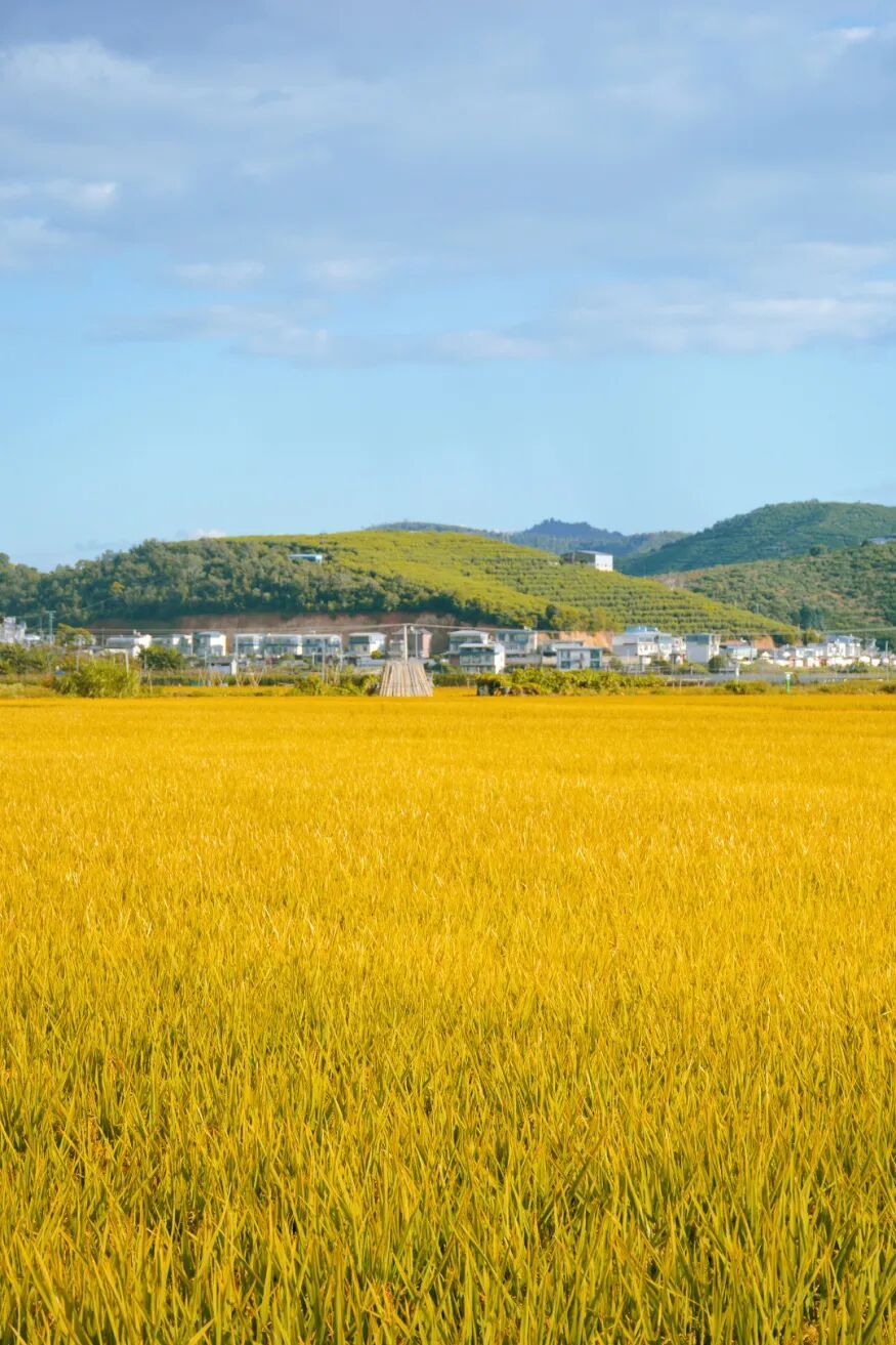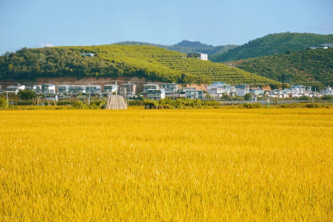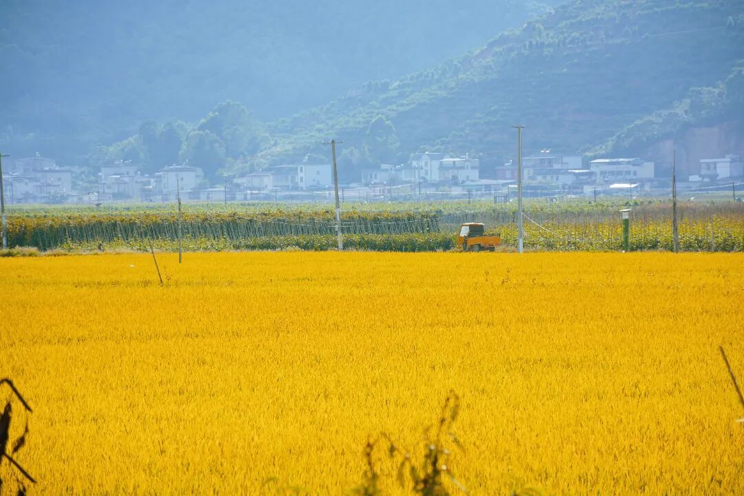 深秋时节,异龙湖畔的稻田黄了。