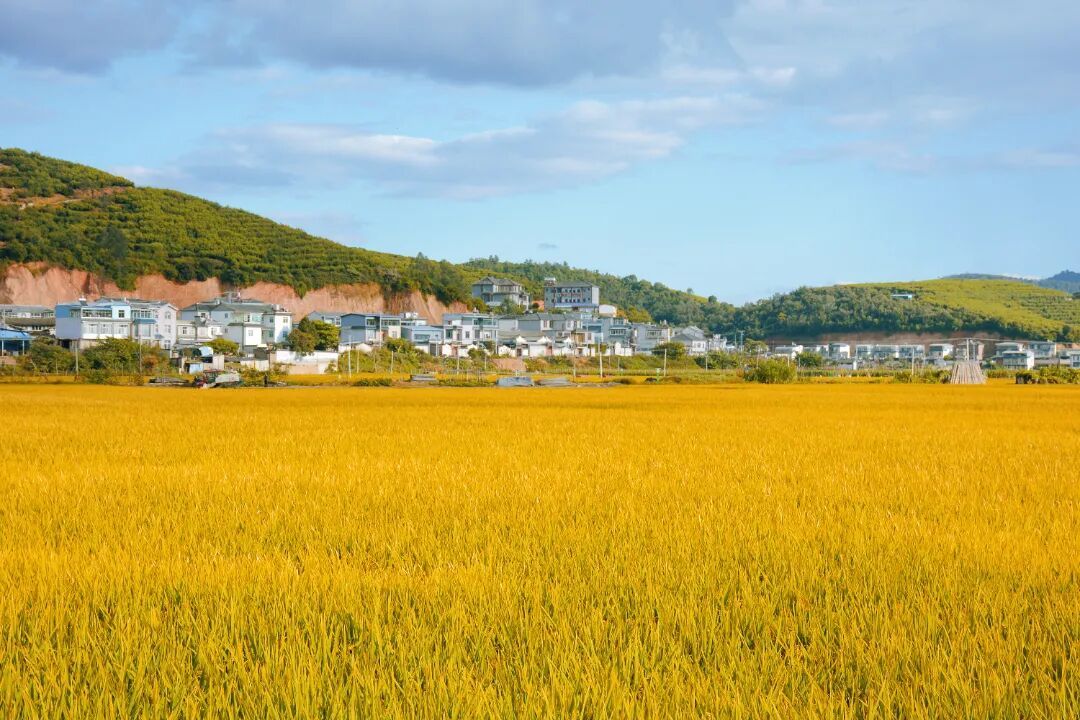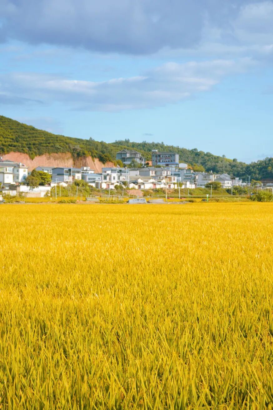 整片整片的稻子都成熟了,金灿灿地铺展在大地上。稻穗沉甸甸地弯着腰,随着秋风轻轻摇曳,发出沙沙的响声。