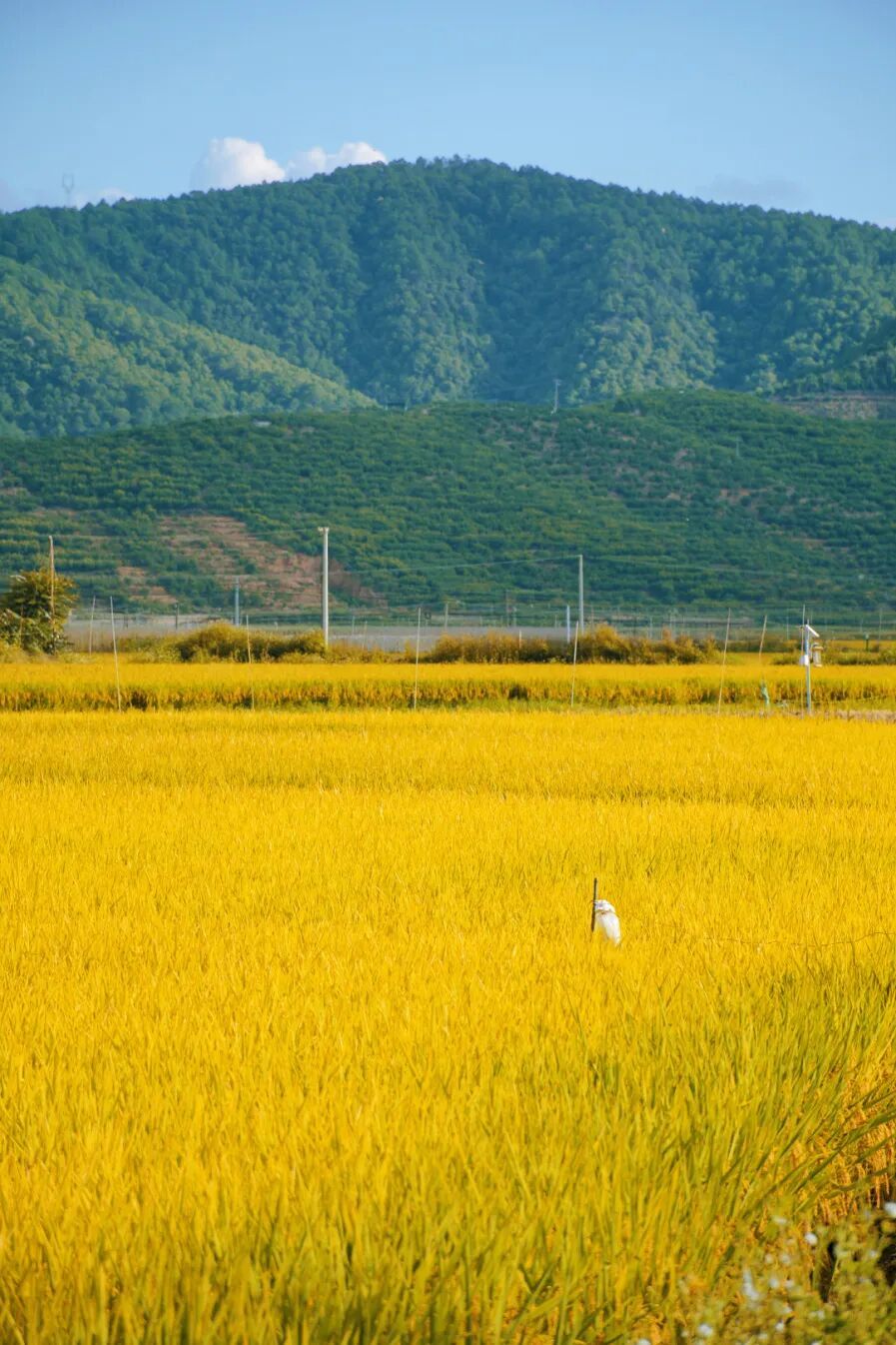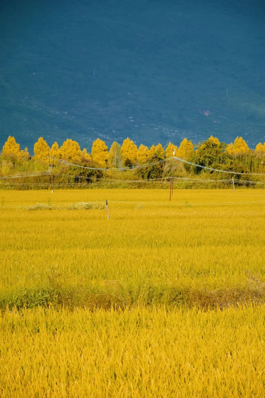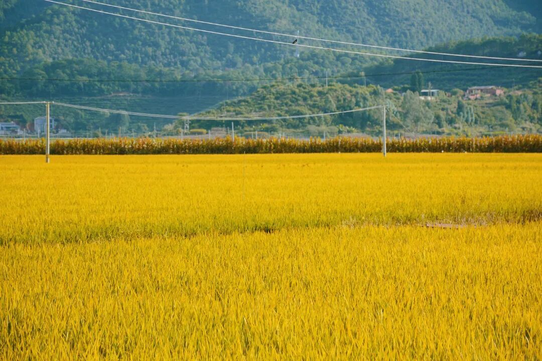 站在田边,能闻到一股特别的香气——那是成熟的稻谷混合着泥土的味道,还带着湖面吹来的湿润气息,闻起来让人格外安心。