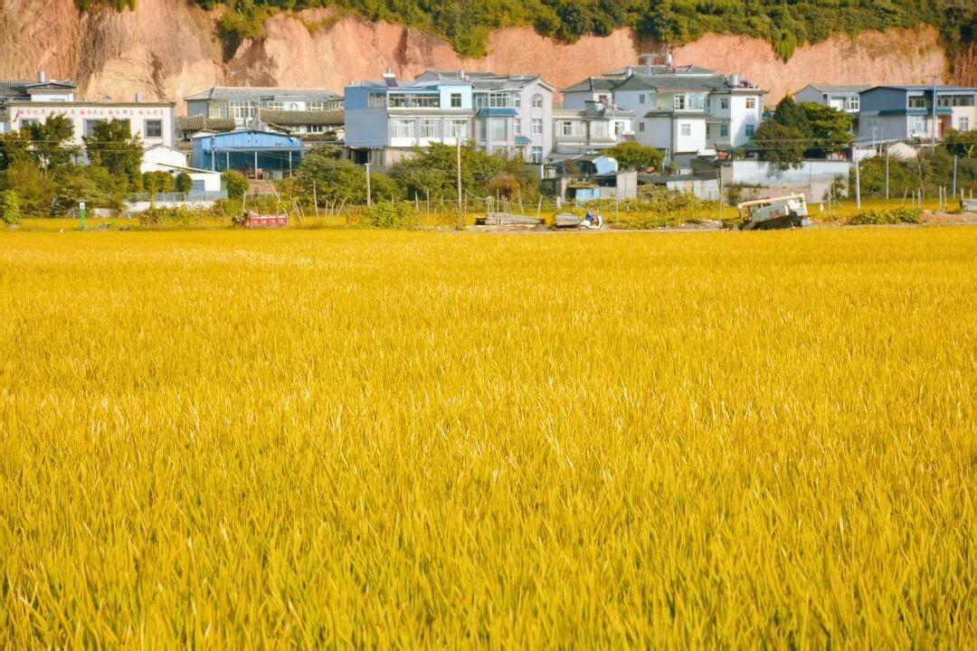 走近了看,每一株稻穗都结满了饱满的谷粒。稻叶已经开始泛黄,却还保留着一点绿意。阳光洒在稻田上,给这片金黄镀上了一层温暖的光。