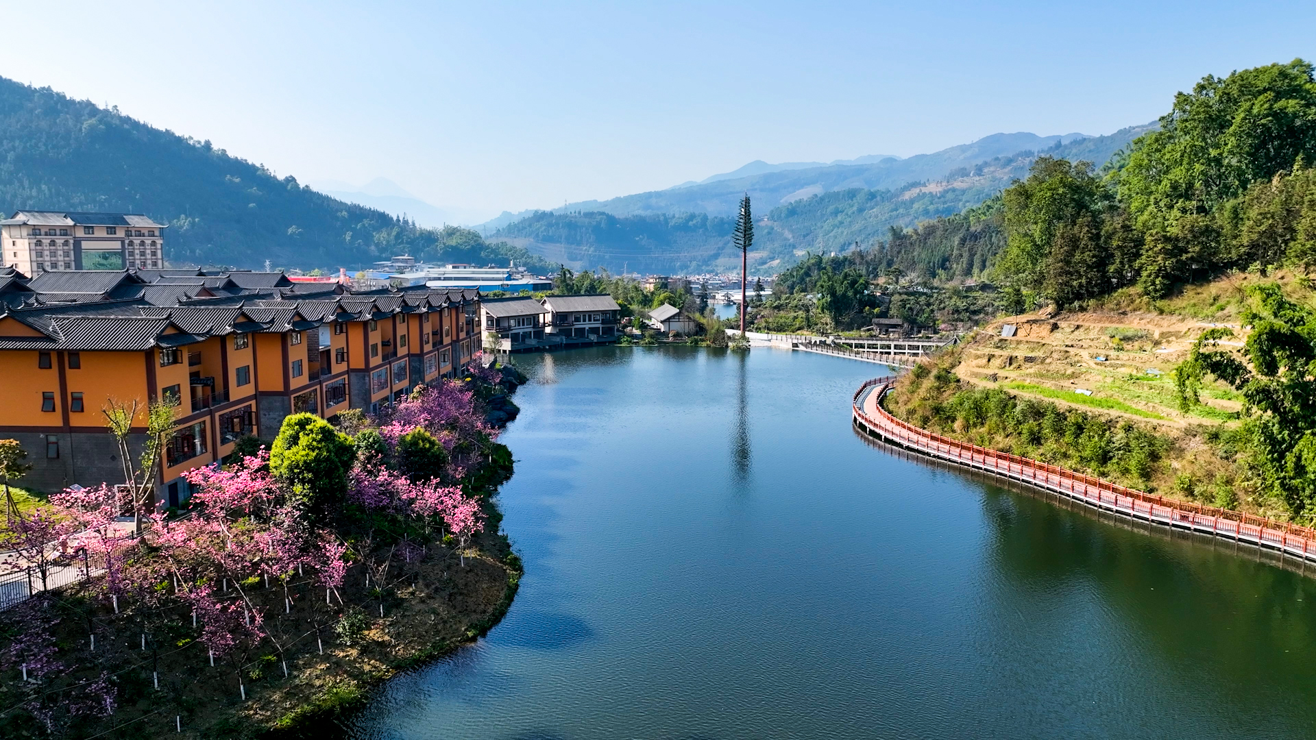 政策赋能下,屏边更将民族特色融入生态肌理,创新打造“苗式”风貌:坡屋顶、小青瓦、吊脚楼等民族元素点缀城市空间。滴水苗城新城片区打造“一心八寨”“一河五景”,老城片区则完成90余万平方米风貌提升,传统苗韵与现代绿意在街巷间交相辉映。