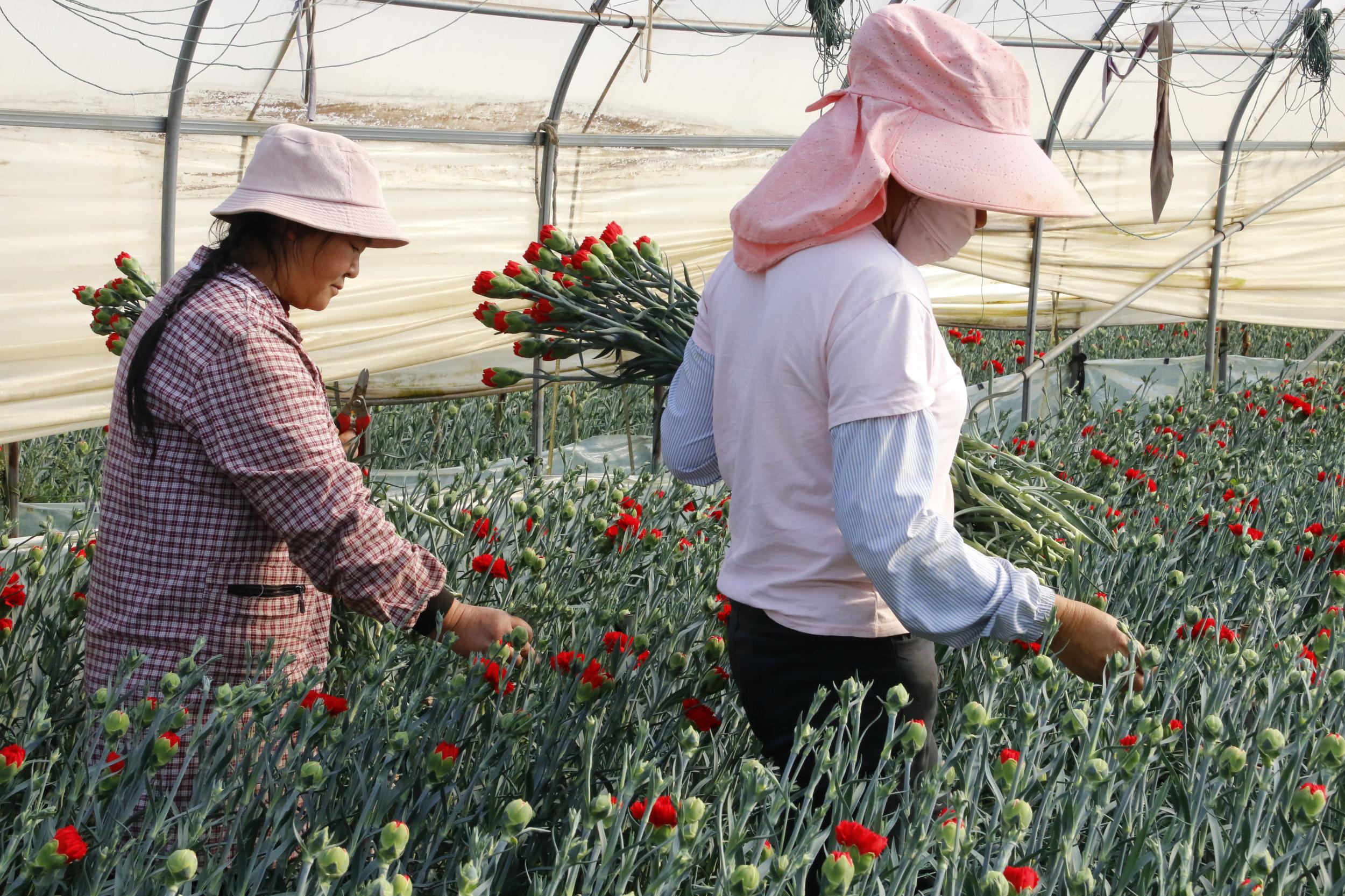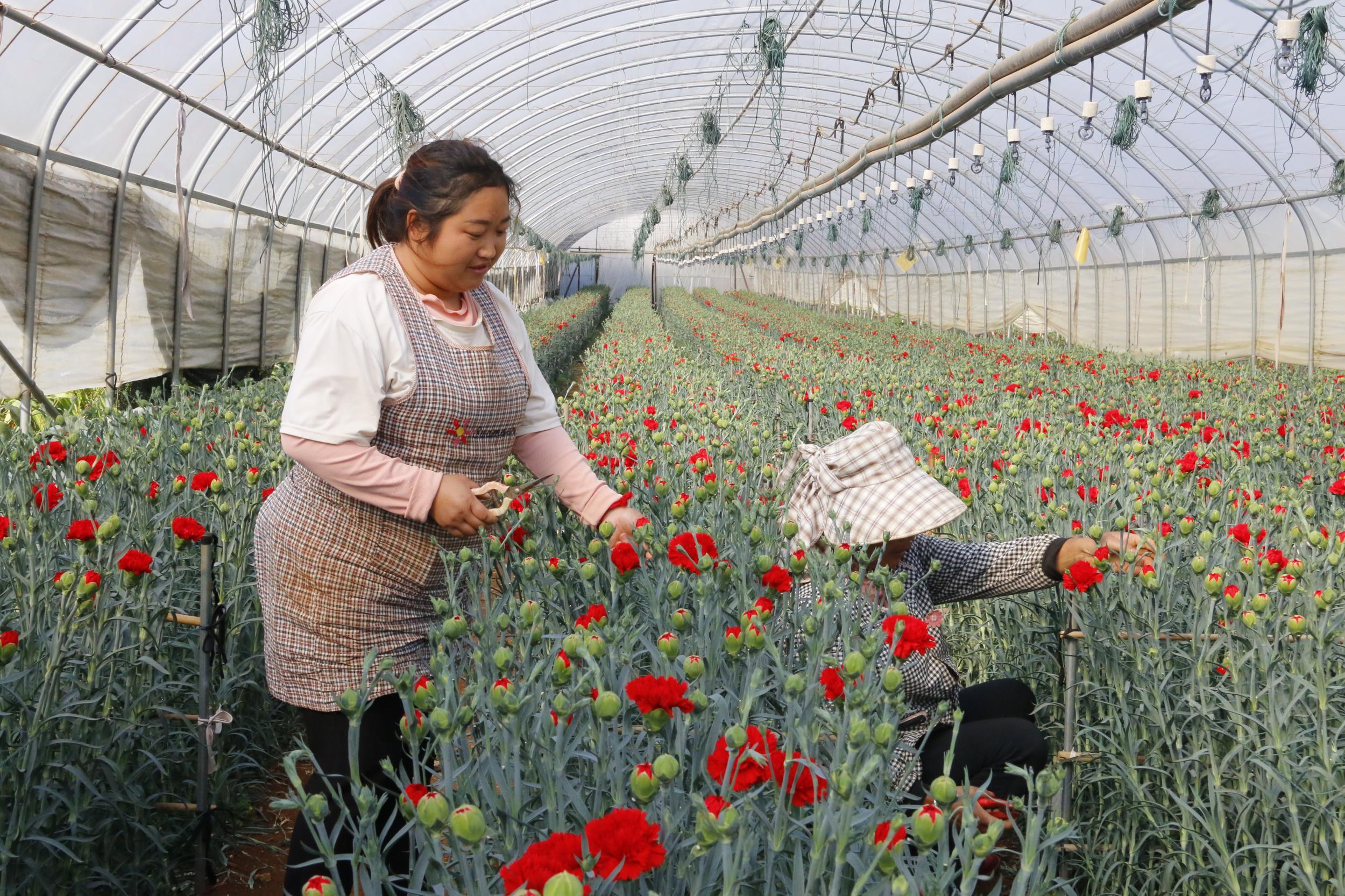 春节将至,年味渐浓,红河哈尼族彝族自治州蒙自市草坝镇的温室大棚里洋溢着别样的“浪漫气息”——洋桔梗、康乃馨等鲜切花迎来丰收季。一枝枝花朵不仅为节日市场增添了浪漫氛围,还成为农户增收致富的“幸福花”。
