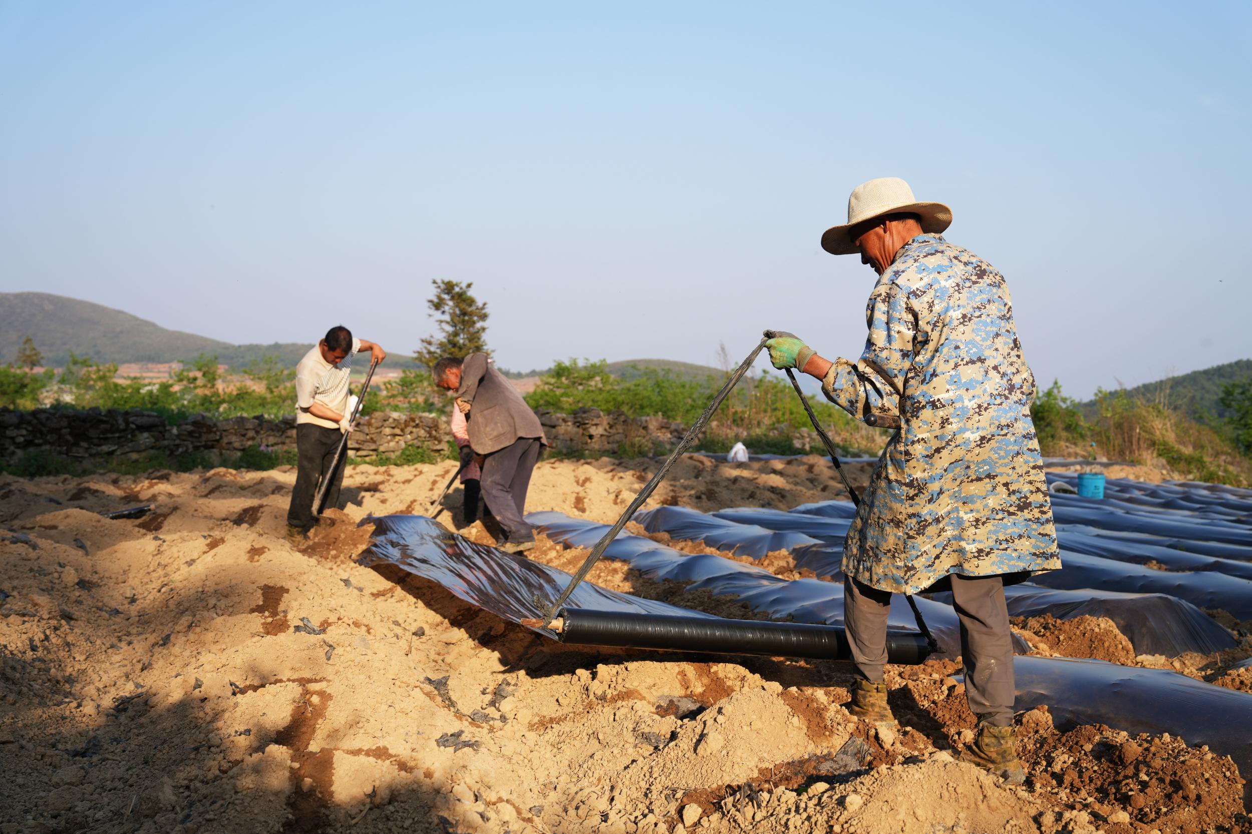 走进俱久村委会烤烟种植连片规划区,只见一沟沟烟墒整齐划一。烟农们穿梭其间,打塘、放苗、浇水、盖膜……一道道工序有条不紊,田间一片繁忙。